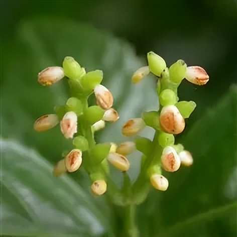为黄绿色,呈穗状花序顶生或腋生,通常3-5个花序聚生成圆锥状,花期在6-8月;