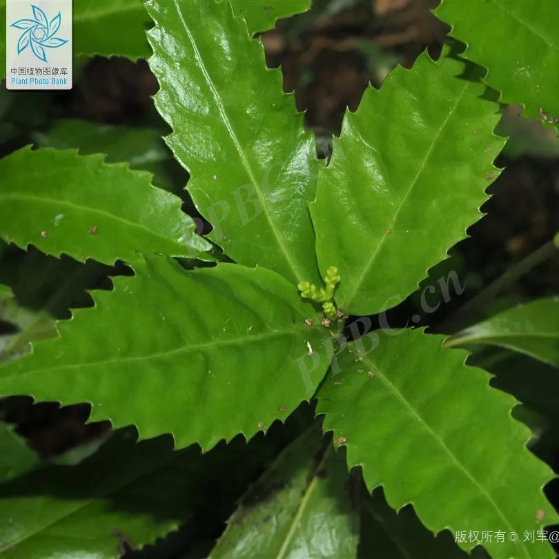 为球形核果,直径约3-4毫米,成熟时呈鲜红色,果期9-11月,成熟的果实点缀在枝叶间,十分醒目。