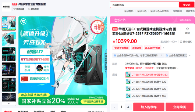 立即体验华硕天选6X高性能台式机,详情咨询华硕商城及华硕JD自营官方旗舰店。