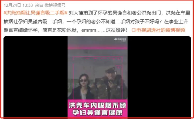 但更让粉丝们气愤的是,在吴谨言待产期间,有知名狗仔拍到洪尧在她面前抽烟的视频。要知道,让别人吸二手烟是一种不道德的行为,何况吴谨言还是一个孕妇。