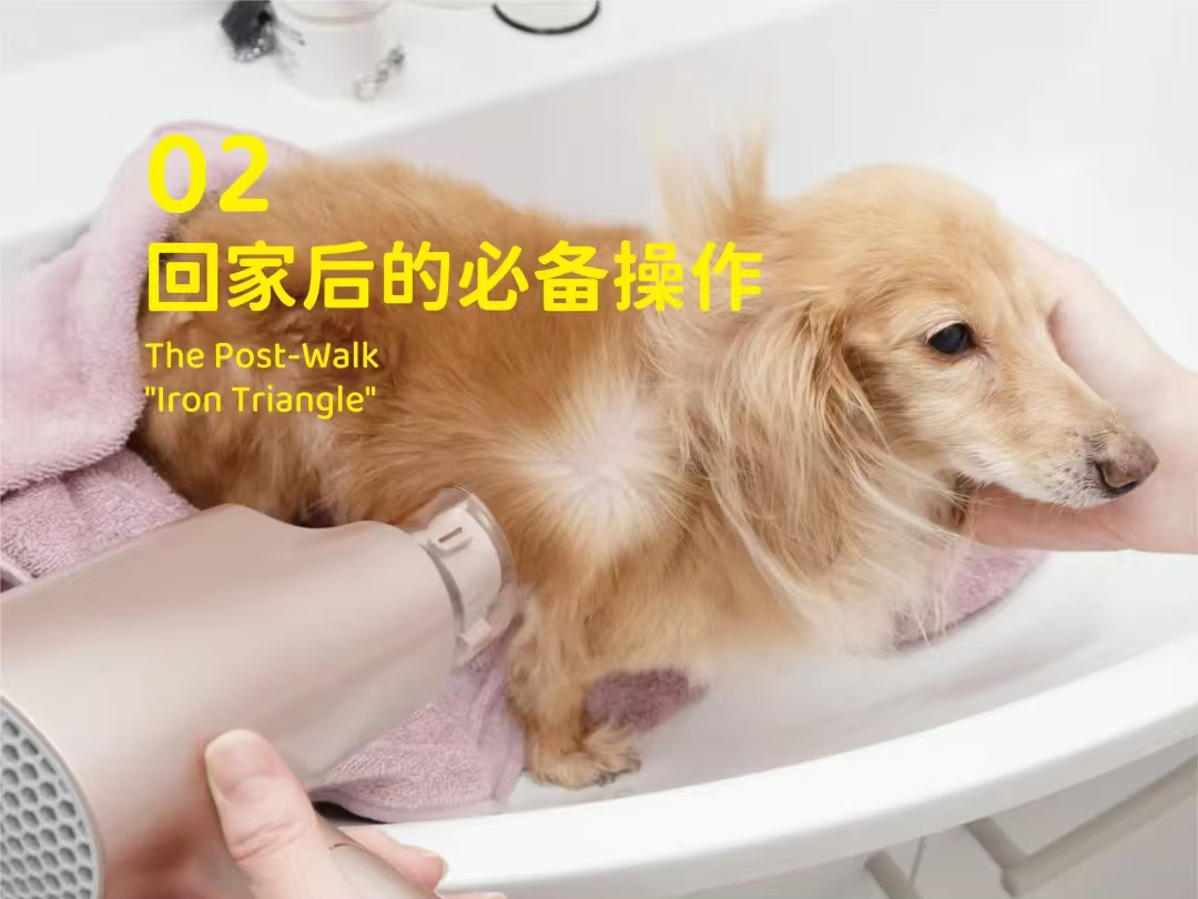 🆘 救命三步:回家立即:擦干身!洗净脚!吹透毛!(不吹干=等着得病!)