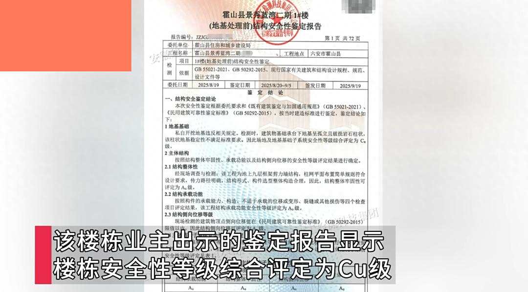 小区物业法人秦先生称,物业没有执法权无法制止业主的行为,他们已经给霍山县城管局上报了,没有收到相关部门的具体鉴定报告。