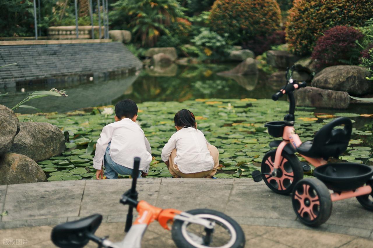女人骑车小心翼翼,一边用腿夹紧大儿子,一边还要叮嘱小儿子在怀里不要乱动,过红绿灯时左看右看,搞得我也超级紧张。
