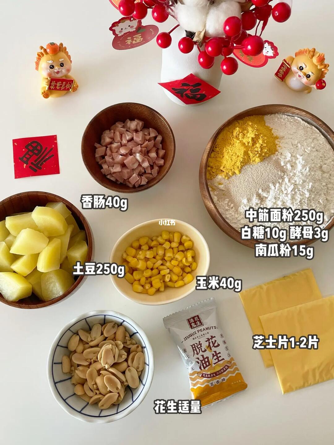 玉米、香肠/火腿肠、芝士片、脱油花生