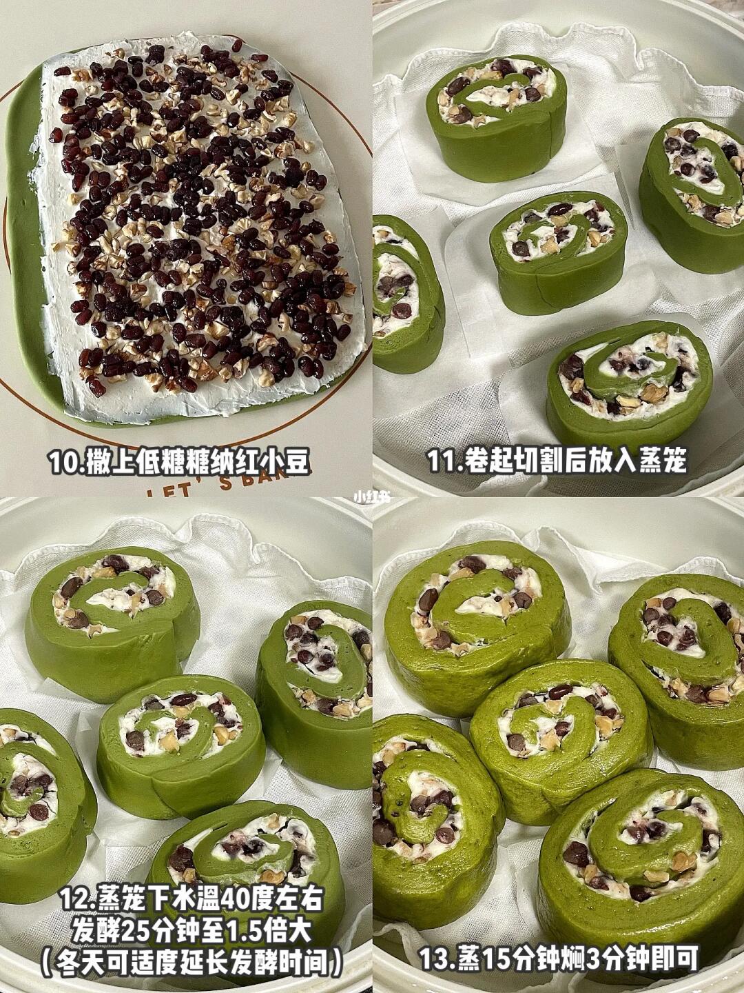 4️⃣卷起收口切割,放入蒸笼发酵至1.5倍大后,蒸15分钟焖3分钟即可。