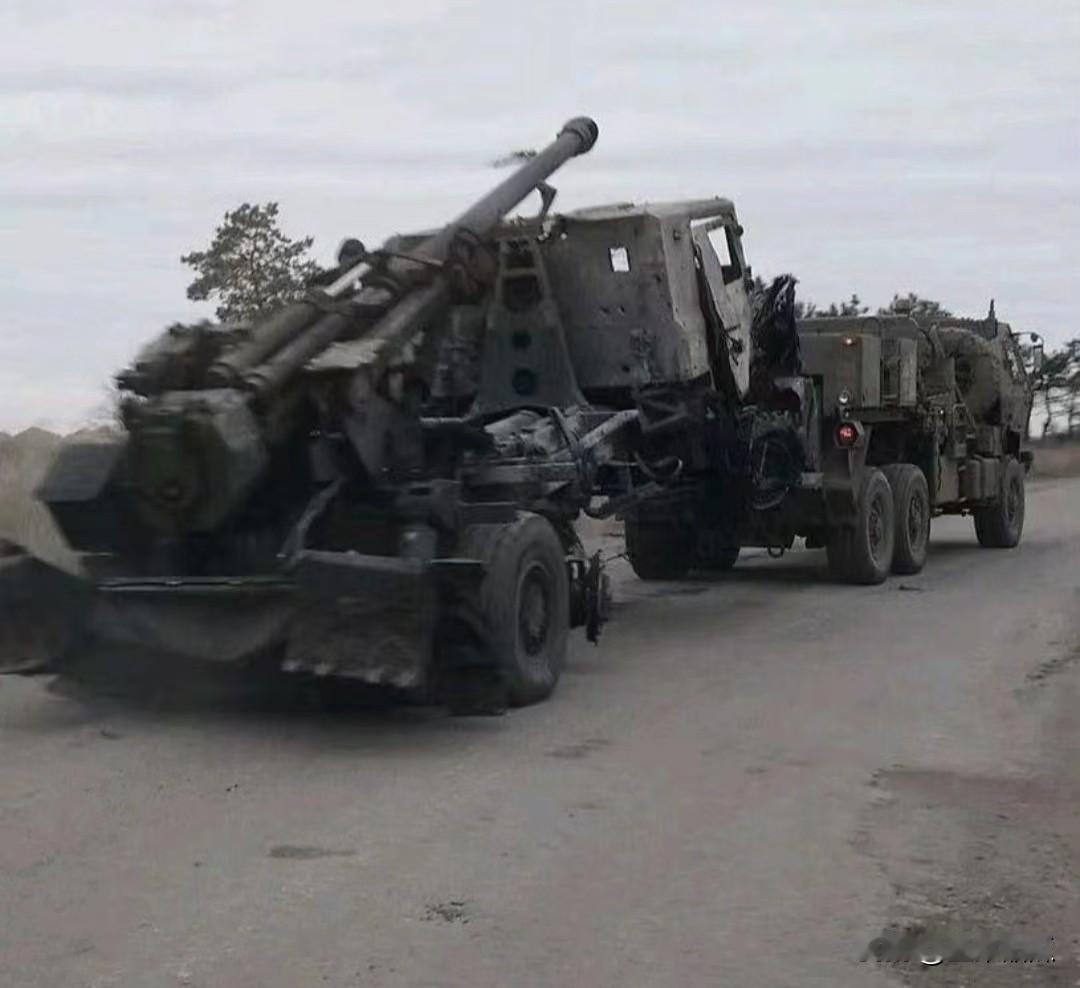 这下不是模型了。乌克兰公路上,美国援助的M1089A1P2装甲救援车够忙的,拉着法国援助的“凯撒”155mm自行榴弹炮到后面修理厂。看样子炮车中部被炸了,失去动力,铁都炸烂了,电子系统基本上报销了。 这可不是什么模型了吧,有图有真相。如果硬要说是模型,看来这模型也是费功夫了,还需要装甲救援车来拉。