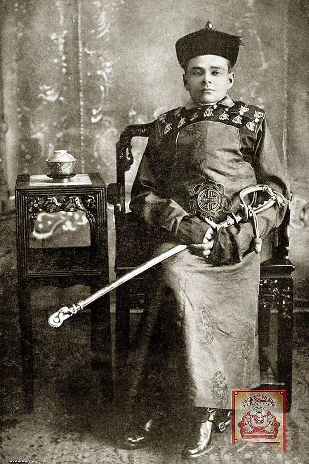 手持龙剑的保皇党“中国维新皇军”大将军荷马李(Homer Lee)。康有为的这支党卫军,规模迅速扩大。依托军校建立的这支“维新军”,最后发展成4个团、2100人的超大规模,有3位少校、20位上尉和14名中尉。军校共设立了22个分校,遍布美国各地及加拿大的温哥华等地。