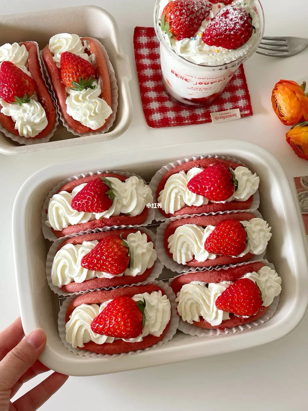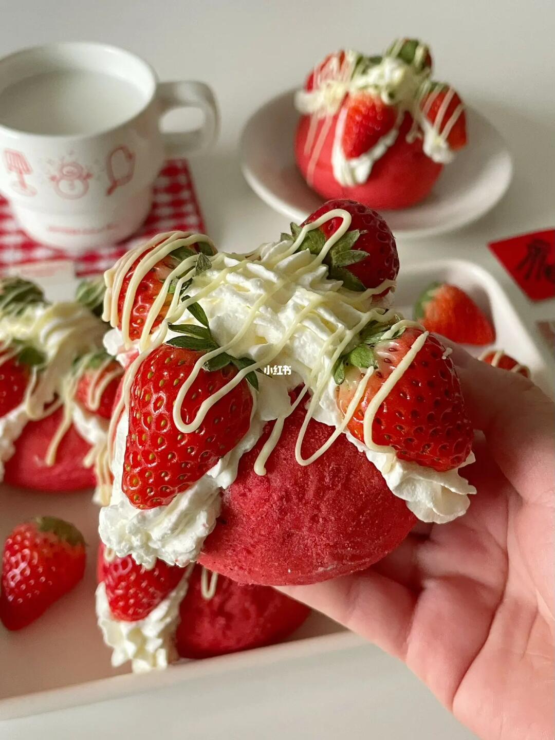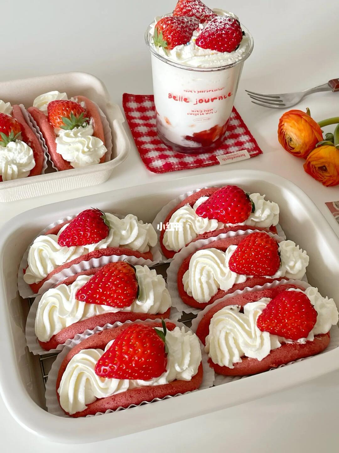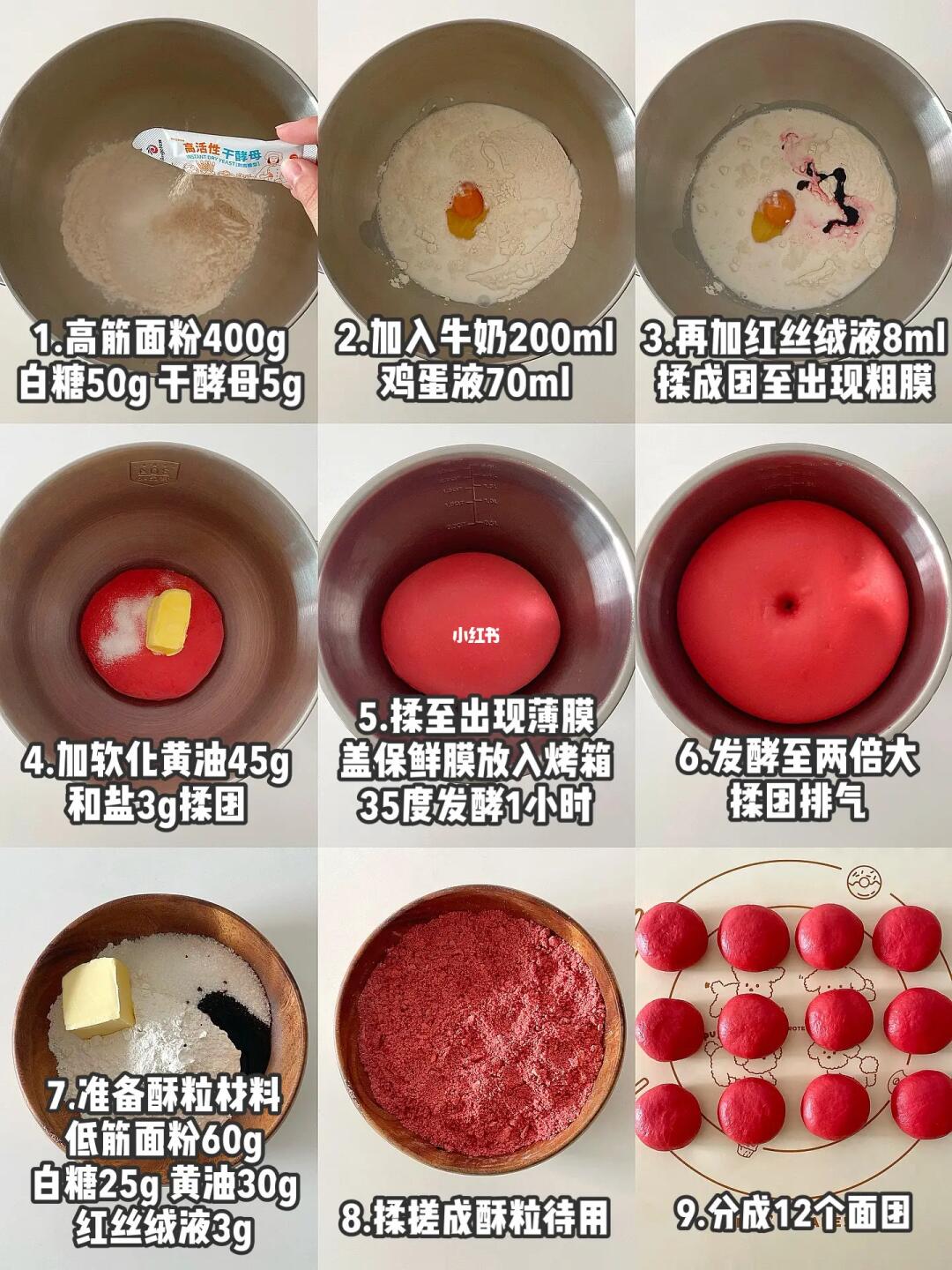 Hi👋朋友们👧🏻👦🏻~ 除夕的脚步越来越近啦~今天分享四款适合过年做的红丝绒小甜品🧧红红火火过新年🧨 具体的步骤在图片上啦✨一起做起来吧! · 1️⃣红丝绒草莓抱抱卷🍓 2️⃣红丝绒车厘子裸蛋糕🍒 3️⃣红丝绒酥粒奶油面包🥯 4️⃣红丝绒草莓纸杯蛋糕🍎 · 对啦朋友们🥰~今年携手春晚总台✌️大年三十18:00一起在一起看《大家的春晚》直播吧