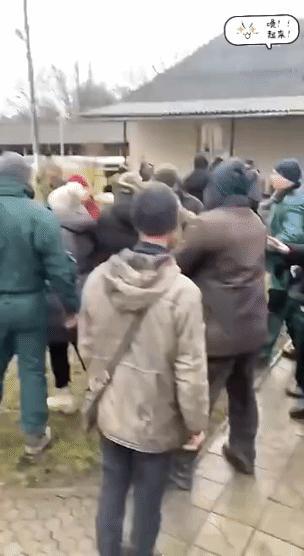 敖德萨民众觉悟了,乌克兰一队征兵人员贸然进入社区抓人,被男女老少一群人围着,甚至