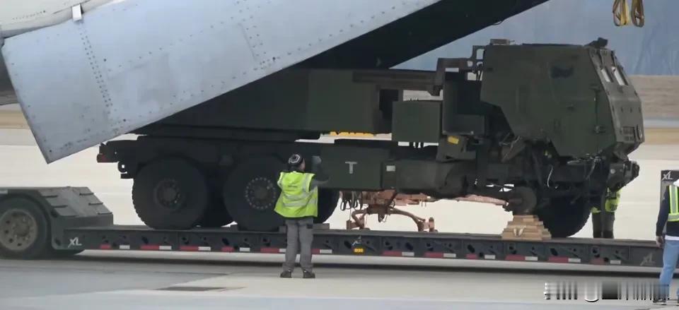 “海马斯”回家了。俄军没有说错,一次打击行动中,“海马斯”有被摧毁和击伤。不管承不承认,两辆“海马斯”搭着安—124在美国宾夕法尼亚州的哈里斯堡机场卸载,回到老家养伤。 从车体外面的伤痕看,弹片伤无疑。可能是一个车队,有些被摧毁了,这辆隔的比较远擦了点皮,按照欧美武器的电子化程度,里面元器件受到了损伤。不返厂修不了了,美国也不会让这种技术在美国外公布,要么被人模仿了,市场不好开展。