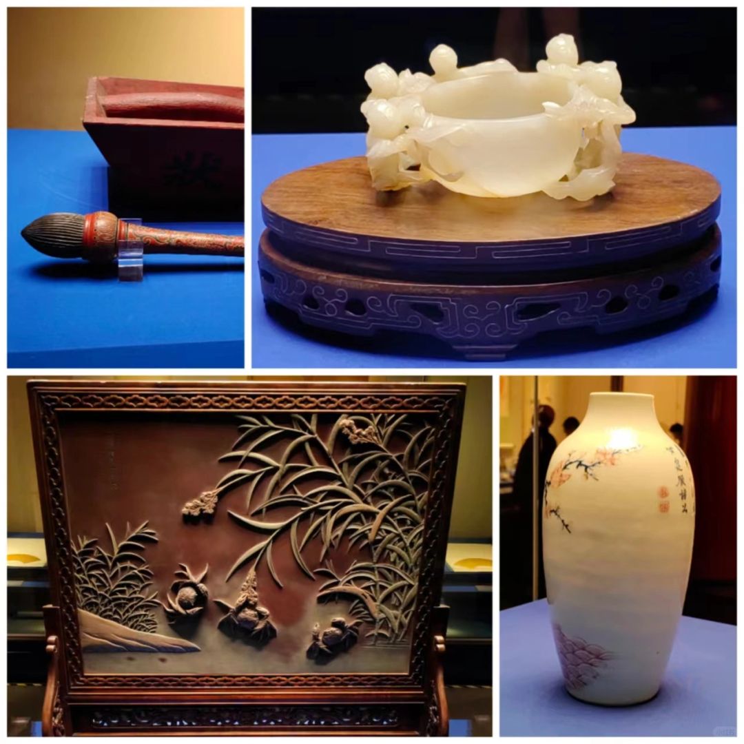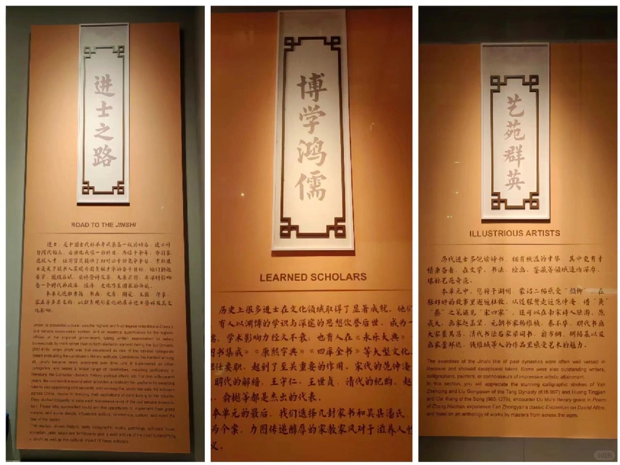 国子文脉 《国子文脉—历代进士文化艺术联展》#值得一去的博物馆 #故宫 图4:清•端石西庐读书图砚。明•琉璃釉透雕状元及第小插屏。清•“喜报三元”鎏银镜。 图6:明•徐渭黄甲图轴。徐渭(1521-1593),初字文清,改字文长,号青藤道士、天池山人等,山阴(今浙江绍兴)人。明代文学家、书画家。 图7:明•王守仁草书龙江留别诗卷。王守仁(1472-1529),初名云,更名守仁,字伯安,号阳明,浙江余姚人。明弘治十二年(1499)进士。明代哲学家、教育家、书法家。于会稽山阳明洞讲学,设书院,世称“阳明先生”。后官至兵部尚书。 图10:左为法式善篆书八言联。东观校书文多炳朗,西台宣命言备典章。此联为作者集“天发神谶碑”字,入笔多浑圆、收笔多峭拔,戈戟森然,摄人心魄。中为孙星衍篆书节录碣石门刻石轴。孙星衍(1753-1818),清乾隆五十二(1787)榜眼。工篆、隶书。清代著名藏书家、书法家、经学家,乾嘉学派重要人物。右为赵翼篆书十一言联。忙里有余闲登山临水觞咏,身外无长物布衣蔬食琴书。此联古雅匀圆,平和自然。 图11:清•林则徐行书七律二首横幅。此件书七律二首,行笔自然流畅,秀劲遒逸,得天然之趣。 图14:清•郑燮行书手札轴。郑燮(1693-1765),字克柔,号板桥,江苏兴化(今兴化市,旧属扬州府)人。清乾隆元年(1736)进士。能书善画,工绘兰、竹、石等。书法创“六分半”体,又称“乱石铺街体”,以隶书体参入行、楷体而别有韵致。 图15:清•钱维城君子图轴。图绘松、柏、梅、兰、水仙“五君子”。 图16:清•伊秉绶隶书五言联。此联书于清嘉庆十二年(1807),伊秉绶时年55岁,已是晚期作品。结字方正,凝重整肃,气势宏大,显示出伊秉绶晚年对隶书艺术不断开拓变革的境界和魄力。 图17:明•董其昌仿黄公望山水卷。 泱泱中华,人才辈出,他们根植于脚下这片热土,奋发自强,“修齐治平”,结出硕果,溢出芬芳,令中华优秀传统文化这棵参天大树枝繁叶茂,常绿常青。“文以载道”,一些进士通过著述与艺术创作,阐释对自身、社会、天下,甚至宇宙的思考,许多思想在很大程度上超越了阶级和时代,至今仍闪耀着文化、科学的光芒,从根本上塑造着中华民族的性格、品格,增强了中华民族的志气、骨气! 蹉跎莫遣韶光老,人生唯有读书好。读书之乐乐何如,绿满窗前草不除。