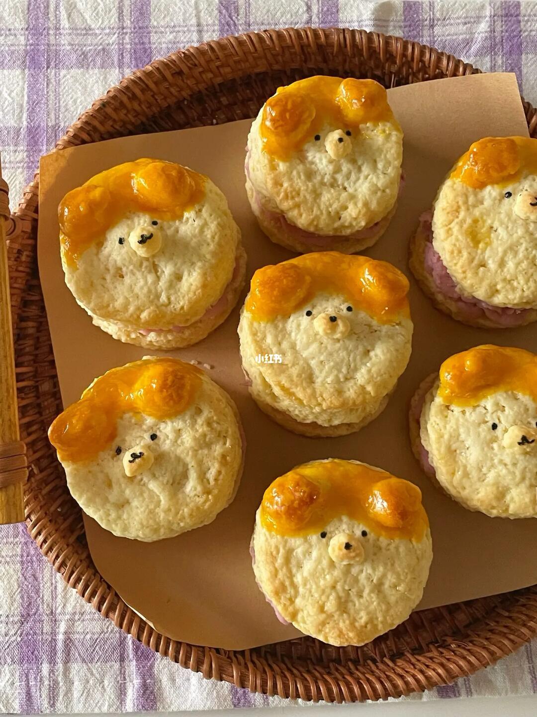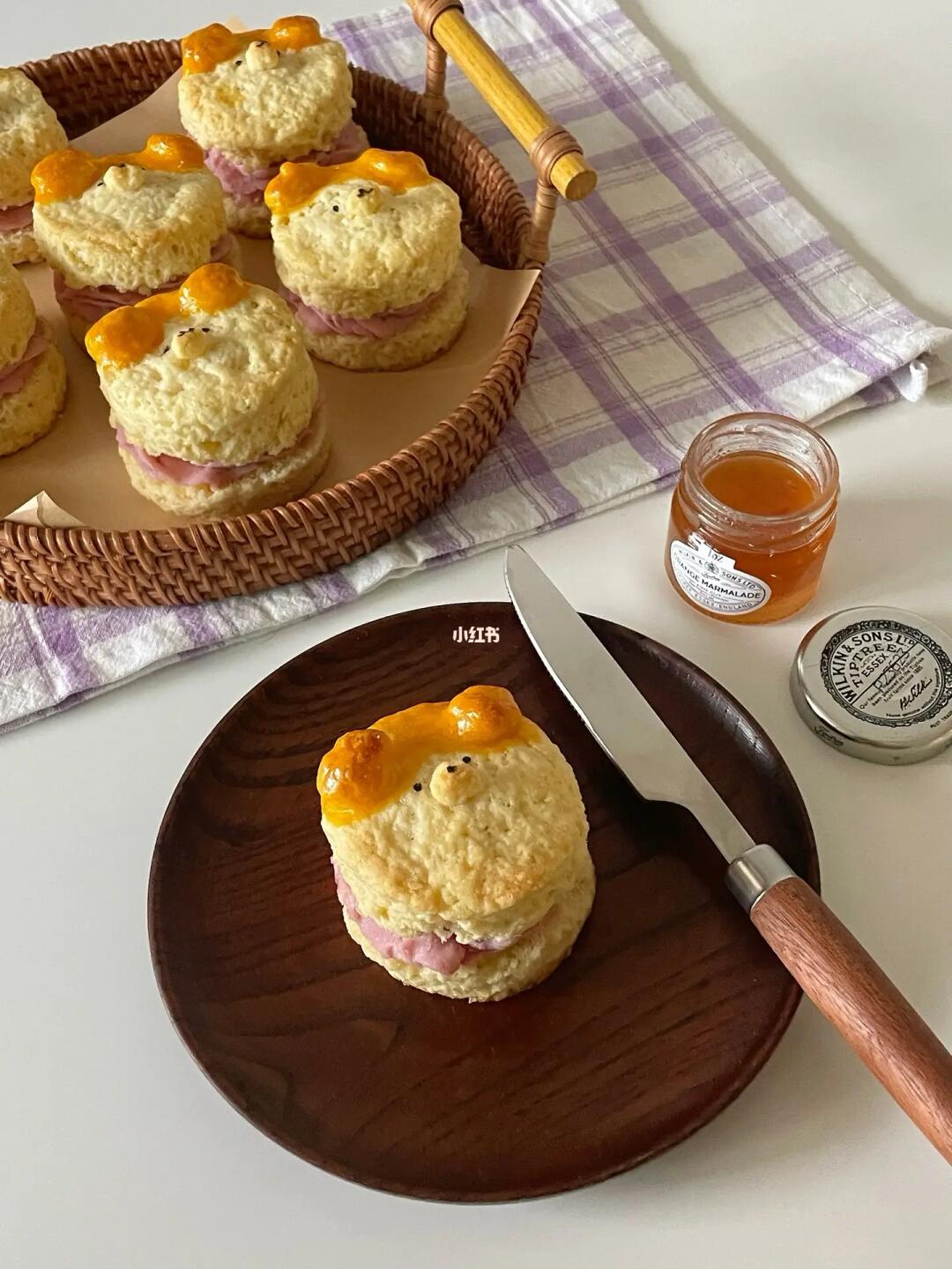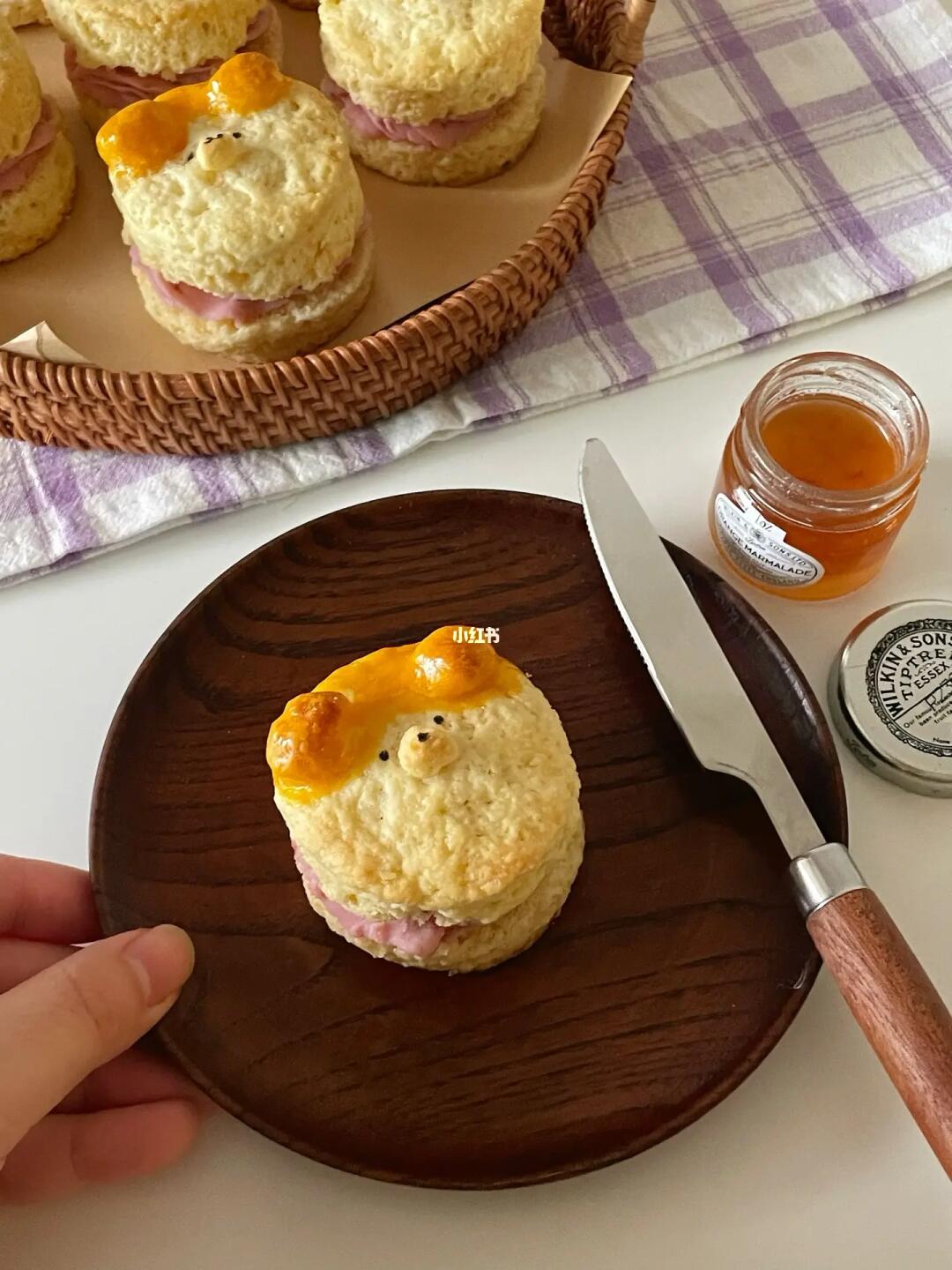 今天在家安排上了这款敲可爱的狗狗造型司康!搭配上好吃的树莓乳酪酱🥰酸酸甜甜~