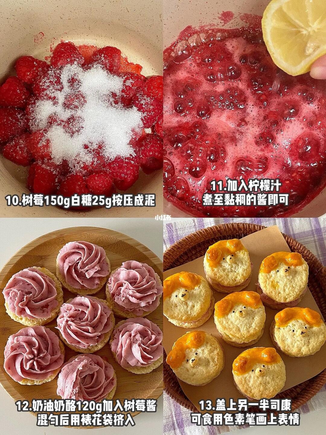 5️⃣挤入自制的树莓奶酪,表面用可食用色素笔或者融化的巧克力画表情。