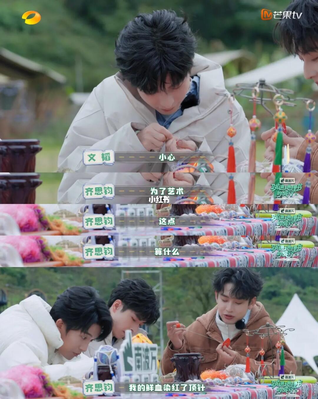 没想到文韬这么心灵手巧!这绣工秀了小齐一脸哈哈哈哈,北大真是除了不教唱跳啥都教。小齐愿赌服输叫“韬爹”,恭喜文韬又喜提一儿🤣 第二季第6期