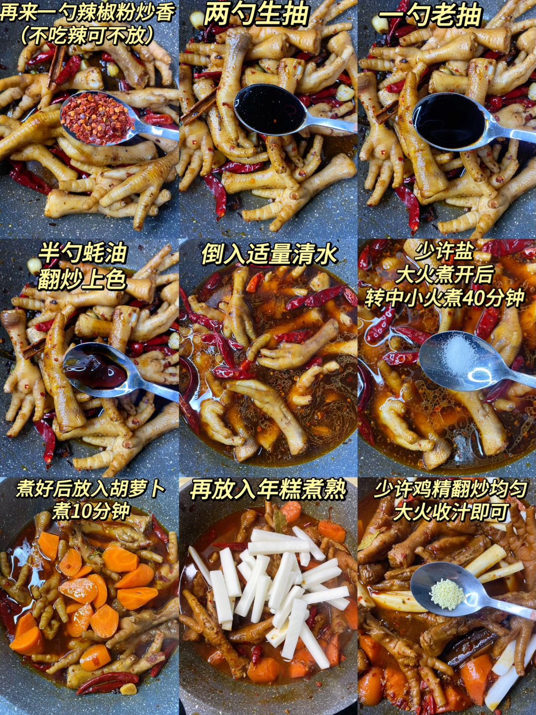 鸡爪、年糕、胡萝卜