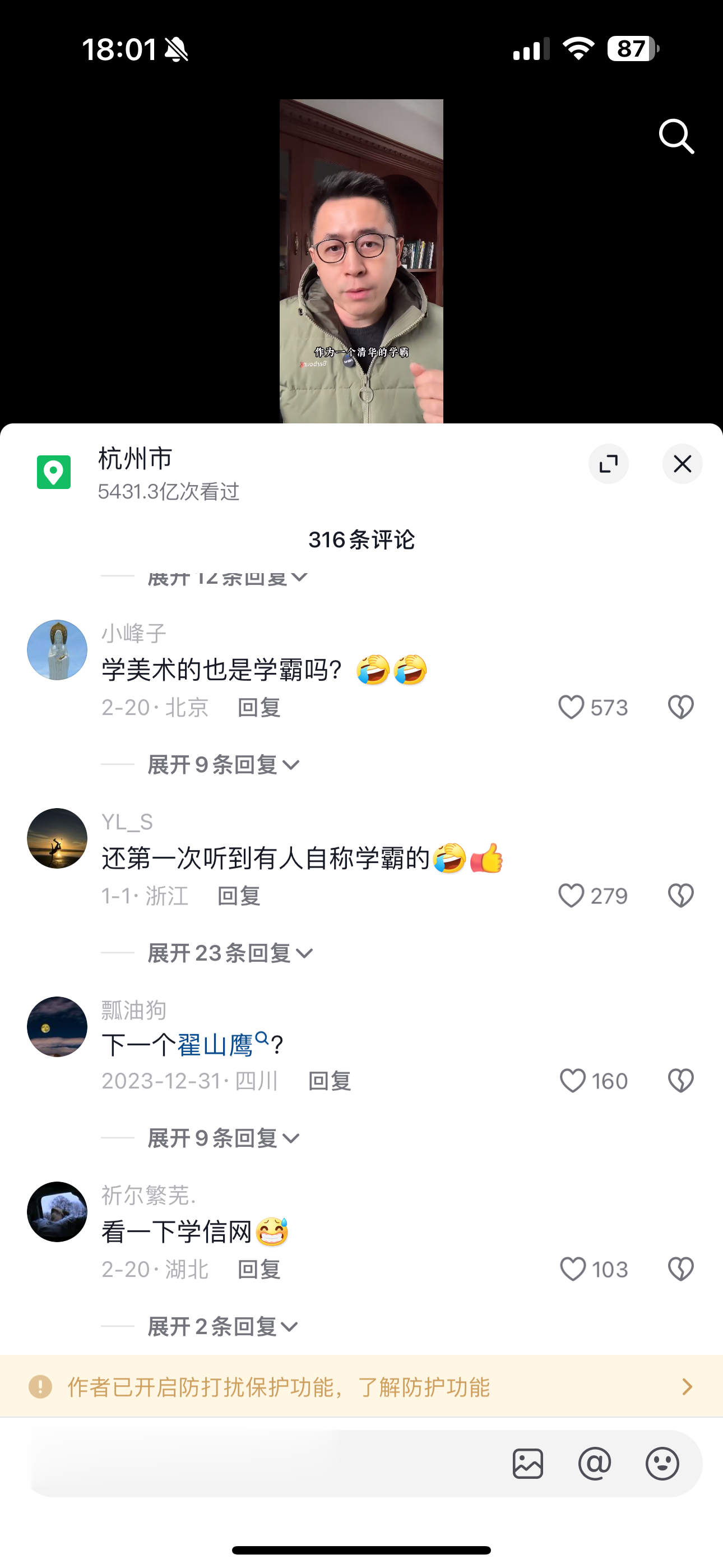在自称清华学霸的视频下面引发一众群嘲,已开启防护功能。