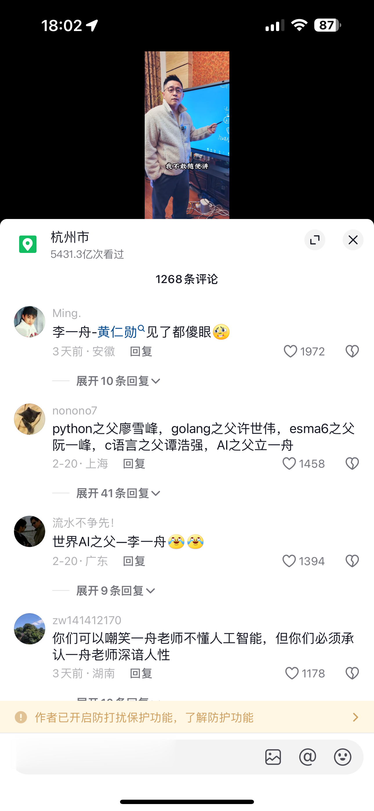 鞭牛士报道,2月24日消息,最近备受争议的AI培训知识付费IP李一舟将抖音评论更改为互关才能评论。