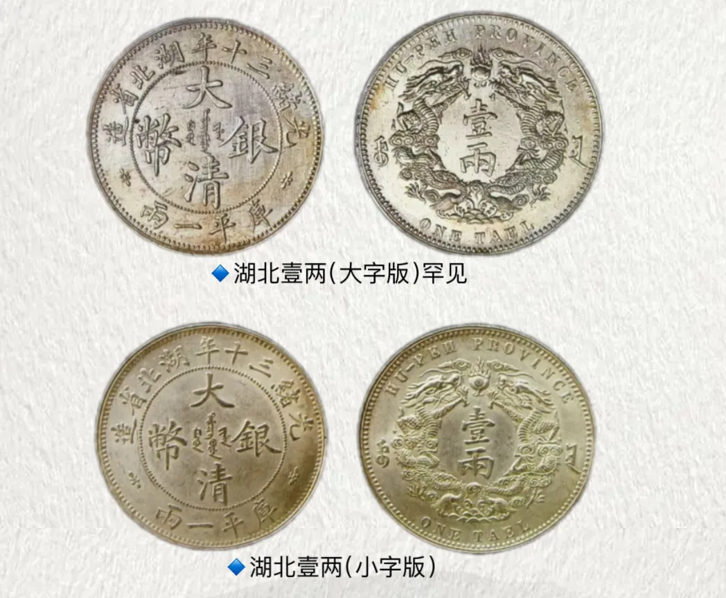 光绪三十年(1904年),张之洞极力主张铸造“两单位”的银元,其理由是中国的赋税都是以两和两以下单位计算的,湖北省便铸造湖北省造大清银币库平一两。