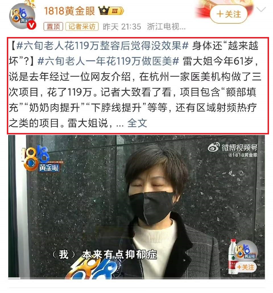 今日(4月6日)下午两点,#六旬老人一年花119万做医美#冲上热搜榜第1位。“女人就是要活得漂亮!”——这句话,像一把温柔的钩子,勾住了一位六旬老人的心。