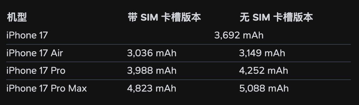 ● iPhone 17 Air主打轻薄,电池约3000mAh