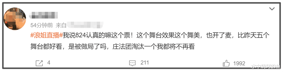 《浪姐7》热度之所以这么高,就是因为节目组主打“全开麦无修音直播”的概念,观众也get到了直播的魅力。遗憾的是,一公舞台上半场纯vocal组开麦,而唱跳组选择对口型,观众可以接受难听,但不接受假唱。