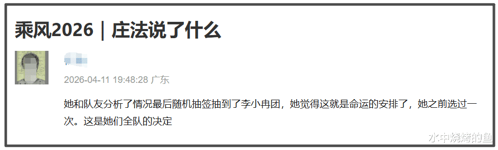作为危险团,庄法团优先选择对手,她选了李小冉团进行比拼。庄法也给出了自己的理由,在和队友分析了情况后随机抽签抽到了李小冉团,她觉得这就是命运的安排。