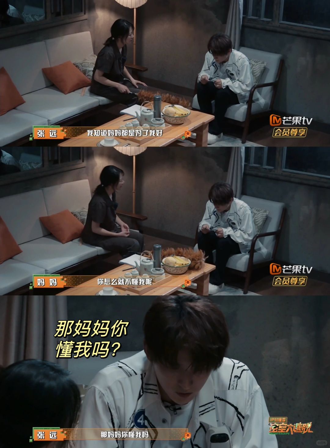 弱小又可怜的张远 替那个孩子说出了没有说出的话 “妈妈你懂我吗?” 用最温柔的语气,说着最走心的话 场外的几个人跟弹幕一样一直在吐槽自己快男的名次哈哈哈哈哈 📺《密室大逃脱IP对撞季》0713