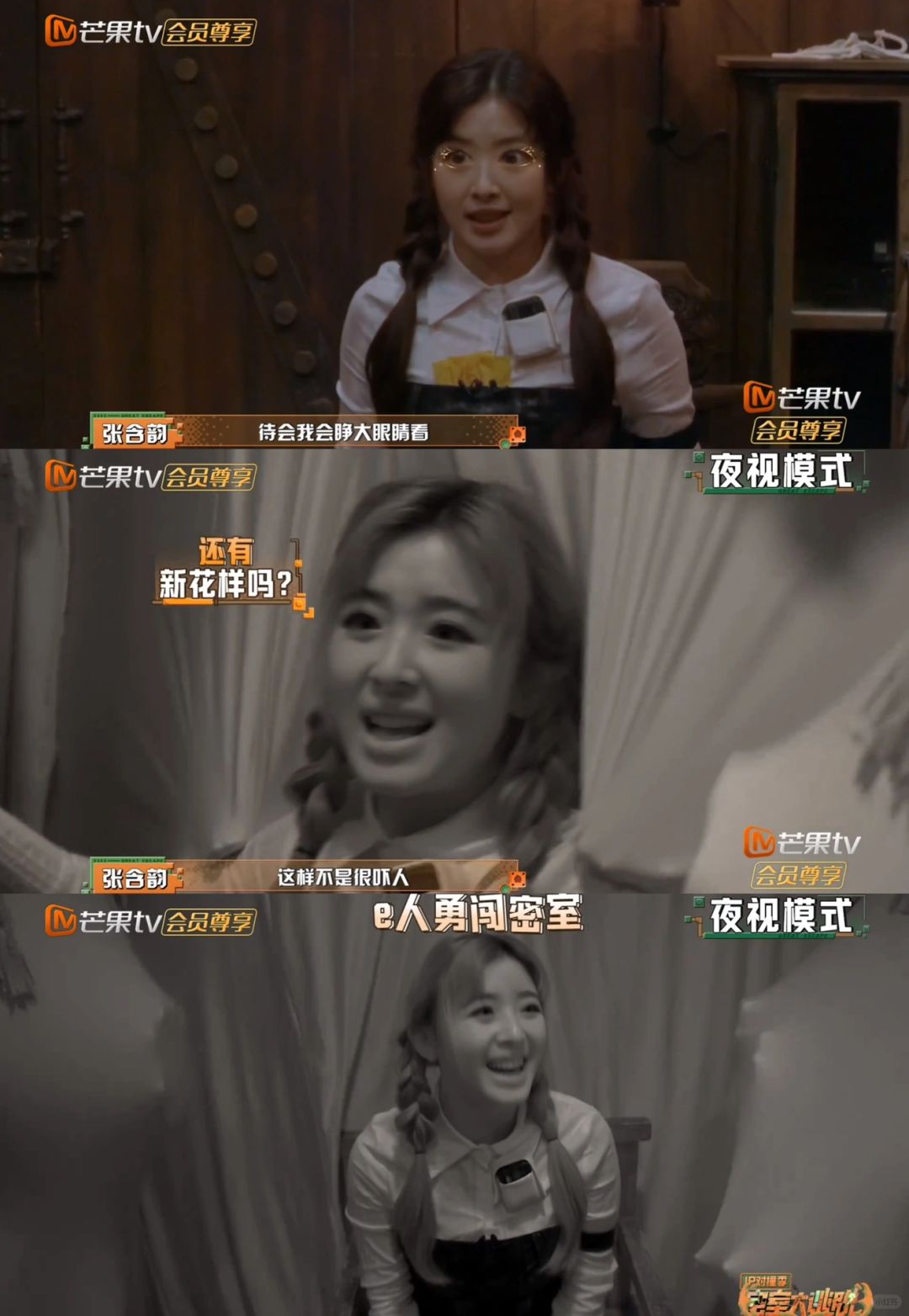 乘风破浪的姐姐们来玩密室大逃脱,没想到节目组给姐姐们安排了最恐怖的《陶寨风云》 看姐姐们逃脱最重要的是保护好耳膜,尖叫声真的太❗️高❗️了❗️不愧是浪姐出来的😂 没想到她们之中的坦克是萌妹张含韵,还有王霏霏和孟佳。胆子最小的是李斯丹妮和沈梦辰,被吓得太搞笑了😂 下周终于轮到0713了‼️真的等太久了😭