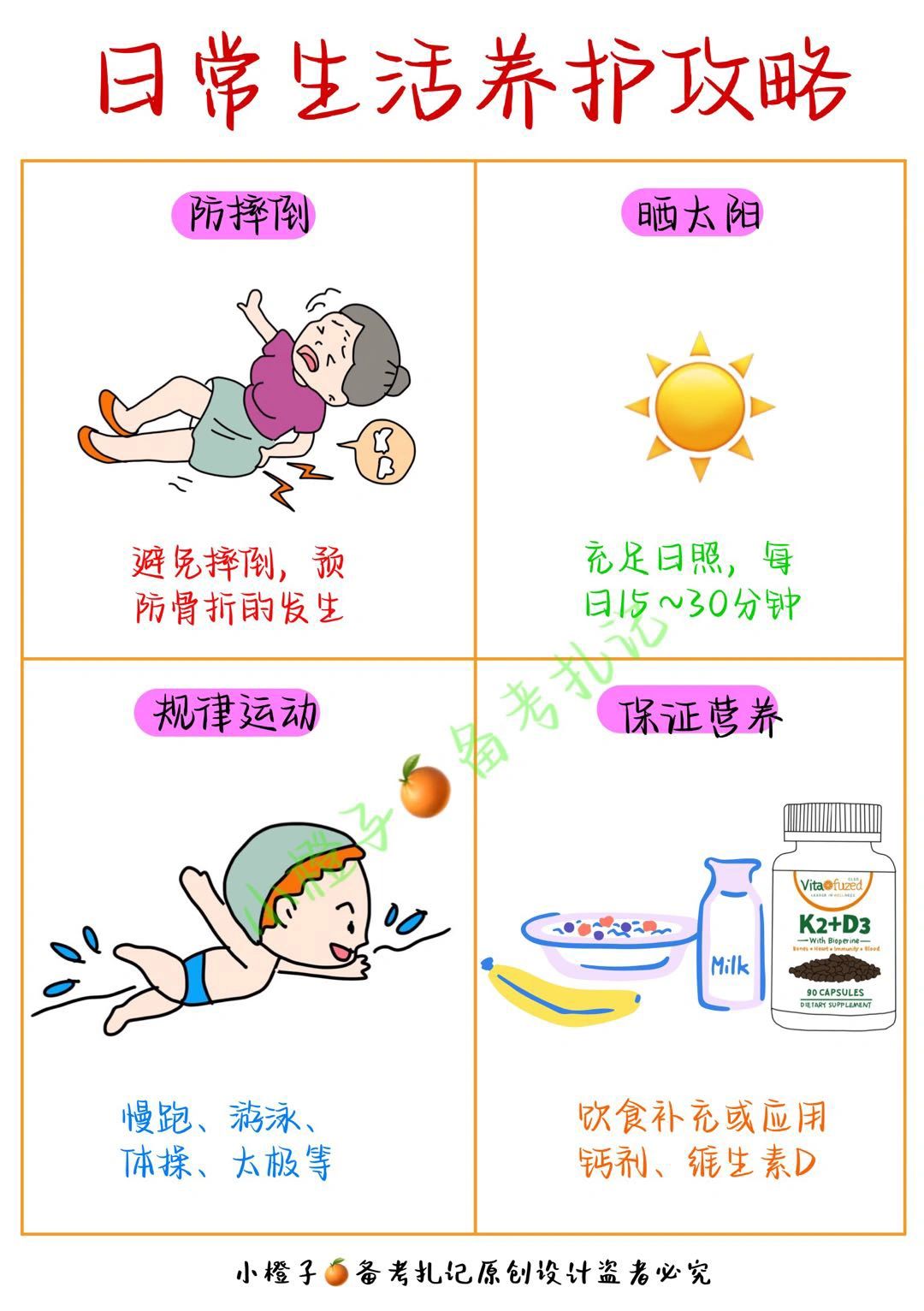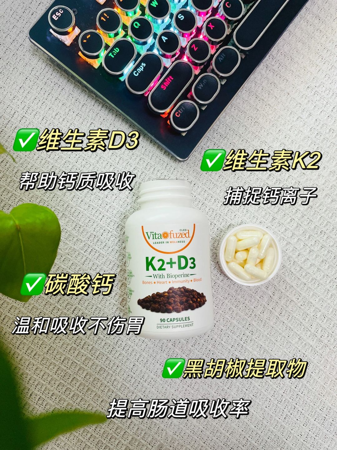 [向右R]骨质疏松是一种由于骨量丢失与降低、骨组织微结构破坏、骨脆性增加,导致患者容易出现骨折的全身代谢性骨病。 [向右R]骨质疏松自测 [一R]乏力:易疲劳,劳累后加重,负重能力下降 [二R]身高变矮:脊柱变形身高变矮、驼背 [三R]腰背痛:腰背部多见,没有固定的痛点 [四R]脆性骨折:轻微外伤或日常活动时易出现骨折 [向右R]日常生活养护攻略‼️ ⭐️防摔倒:避免摔倒、预防骨折的发生 ⭐️晒太阳🌞:充足日照,每日15~30分钟 ⭐️规律运动:慢跑、游泳🏊‍♀️、体操、太极等 ⭐️保证营养:饮食补充或应用钙剂、维生素D [向右R]如何正确的补钙❓ 🍀Vd3:帮助食物中的钙质被吸收到血液里,作用到骨骼里 🍀Vk2:它就像是一个精准的“钙爪”帮助把血液中的钙离子“抓取”并沉积附着到骨骼中,牢牢锁住,真正做到引钙入骨 最近小橙子给爸妈准备了Vitafuzed的补钙胡椒素‼️ 这款维生素K2+ D3胡椒素跟普通钙片相比添加了维生素K2+D3成分,营养更加全面口轻松满足我们身体日常所需维生素D3帮助钙的吸收,把吃到肠胃中的钙吸收转化到血液中,把肠钙变成血钙,在基础上还添加了胡椒提取物强化吸收生物利用率提升30% 早晚各一粒,温开水送服,小小一粒不卡喉,不单单适用于中老年人,对我们打工人,孕妈妈也是适用的呢!嘎嘎好 给长辈贴心的钙,正确补钙是关键 …………………………………………………………
