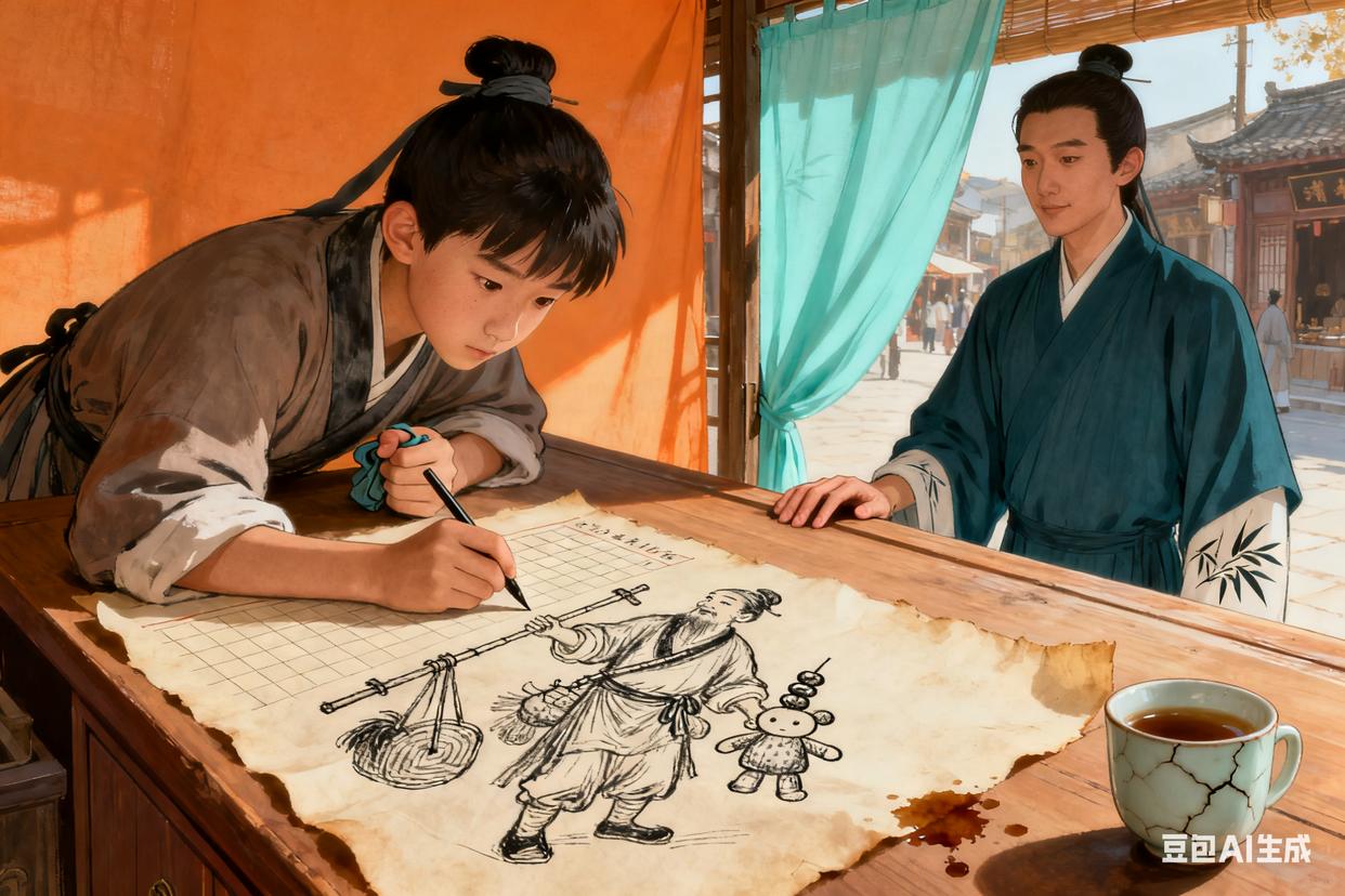 明孝宗弘治十八年(1505年)暮春的苏州,桃花坞里的风都带着甜香。唐寅坐在竹制的圈椅上,手里捏着半块被磨得光滑的松烟墨,砚台里的墨汁刚磨到浓稠,一缕阳光从窗棂漏进来,正好落在他面前摊开的宣纸上,纸角微微卷起。风又吹过,几瓣粉白的桃花落在纸上。他伸手去拂,指尖沾了墨,在白纸上留下个淡黑的印子,像一滴没忍住的泪。他盯着那印子看了半晌,忽然笑了——这不经意的一笔,倒比刻意画的更有韵致。那时候的唐寅,已经过了而立之年,离那场让他跌落云端的会试舞弊案,已经过去六年。一、少年意气,笔下生花成化二十年(1484年),苏州阊门的“唐记酒肆”里,十四岁的唐寅正趴在柜台后,偷偷用父亲记账的纸画画。他画的是酒肆门口路过的货郎,扁担上的糖葫芦、布偶,甚至货郎脸上的皱纹,都画得活灵活现。这天,江南画坛的名家沈周路过酒肆,恰好看到了这张画。他站在柜台外,盯着画看了许久,问这个少年:“你愿不愿意跟我学画?”唐寅抬头,看到沈周温和的眼神,心里又惊又喜。那时候他只知道自己喜欢画,却从没想过能拜这样的名师。他攥着衣角,小声说:“我家是开酒肆的,怕没时间……”沈周笑着拍了拍他的肩:“画贵有韵,韵在笔外。只要有心,挤挤就有时间。”往后的日子里,唐寅每天早起帮父亲看店,下午就去沈周的画室学画。沈周教他用墨,教他观察山水的走势、花鸟的姿态,更教他“画如其人,心正则笔正”。有一次,唐寅觉得自己画的《山水图》已经很好了,沈周却指着画里的一棵树说:“这树的枝干太直,少了点韧劲。你年纪小,心气高,可做人作画,都要懂藏锋。”唐寅盯着那棵树看了一夜,第二天清晨,他重新画了一幅,树干微微弯曲,却透着一股向上的劲。沈周见了,点头道:“你懂了。”这份领悟,成了他画艺的根基。《明史·唐寅传》里说他“性颖利”,这份颖利,在少年时就藏在他的画笔里。