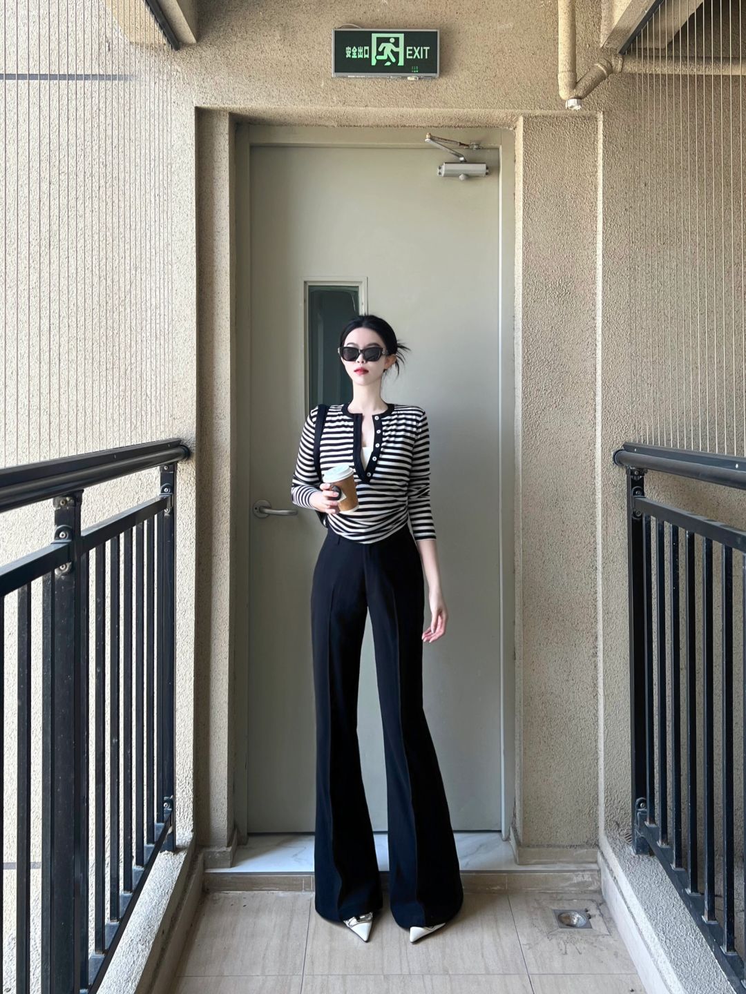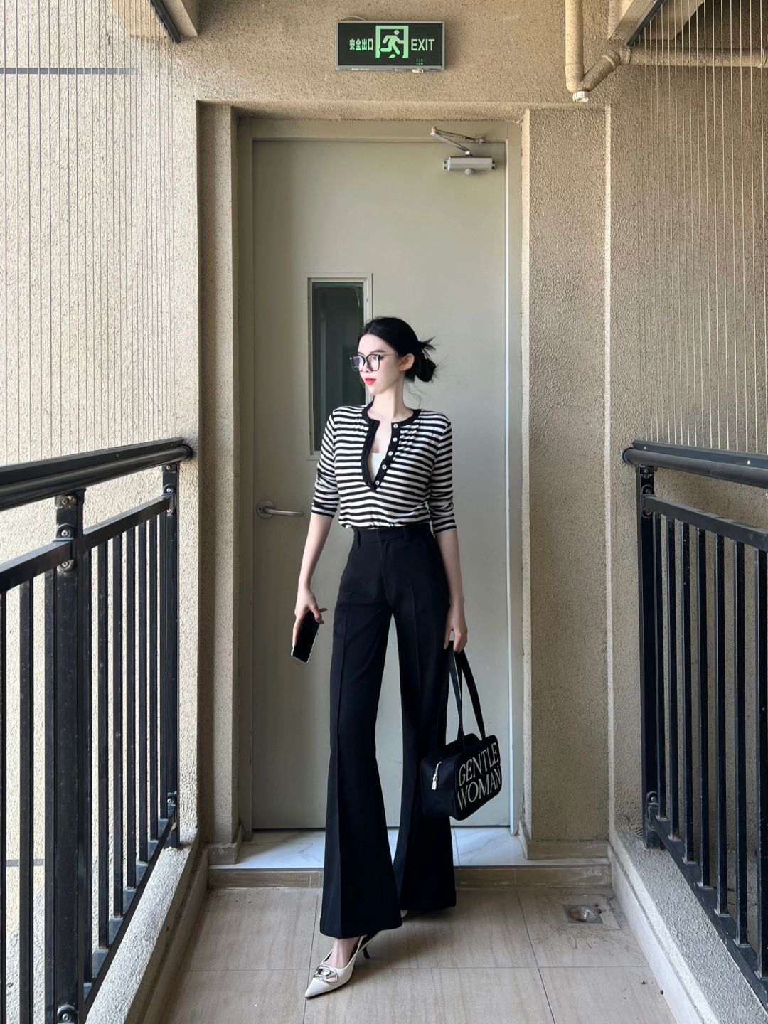 搭搭喇叭裤!就是明天上班准备穿的衣服了!