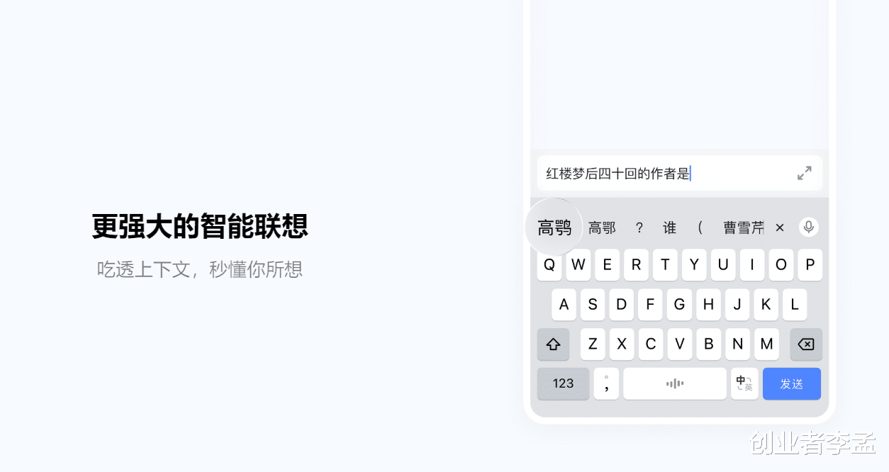 例如:红楼梦的作者是谁,在候选结果中自动就展示了曹雪芹!这会省下多少时间,不至于我们每一句话都要打出来,而是我们可能提及一句话的开头几句,后面的自动就出来了,就像诗句,君不见,黄河之水天上来(自动就出现在候选框了)这种基于AI的判断是高效打字的关键!