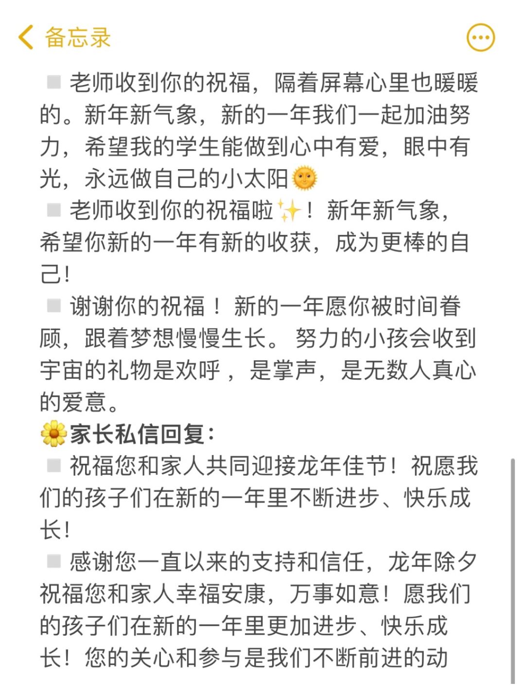 ▫️谢谢您的祝福,家长的支持和理解是我新年收到的最好的礼物。在这里也祝您和您家人在新的一年幸福、快乐、顺利、平安、也希望孩子在新的一年越来越好