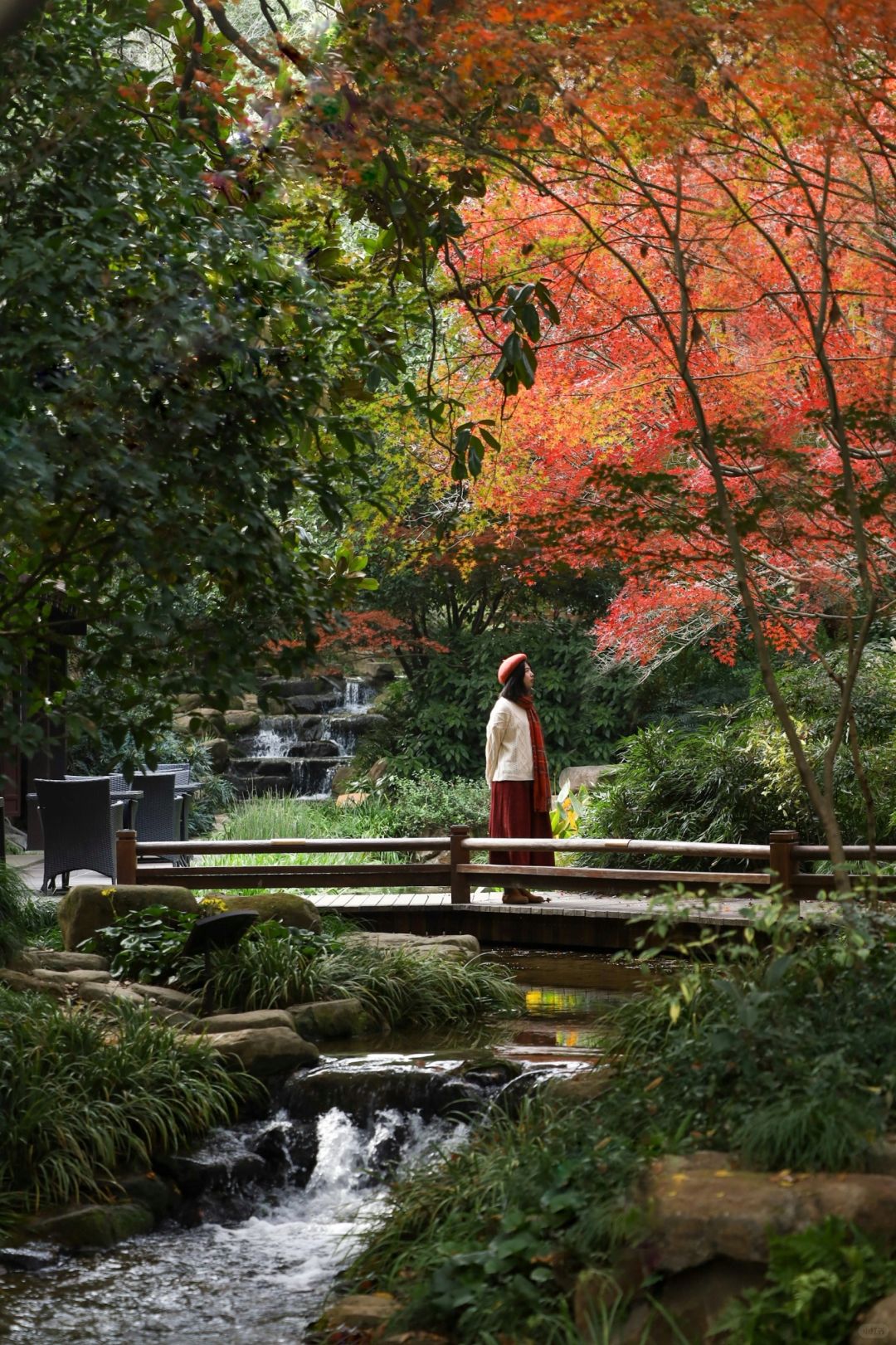 茶博物馆有双峰馆和龙井馆,双峰馆7号厅很出片,现在枫叶正盛,搭配小桥流水好有意境
