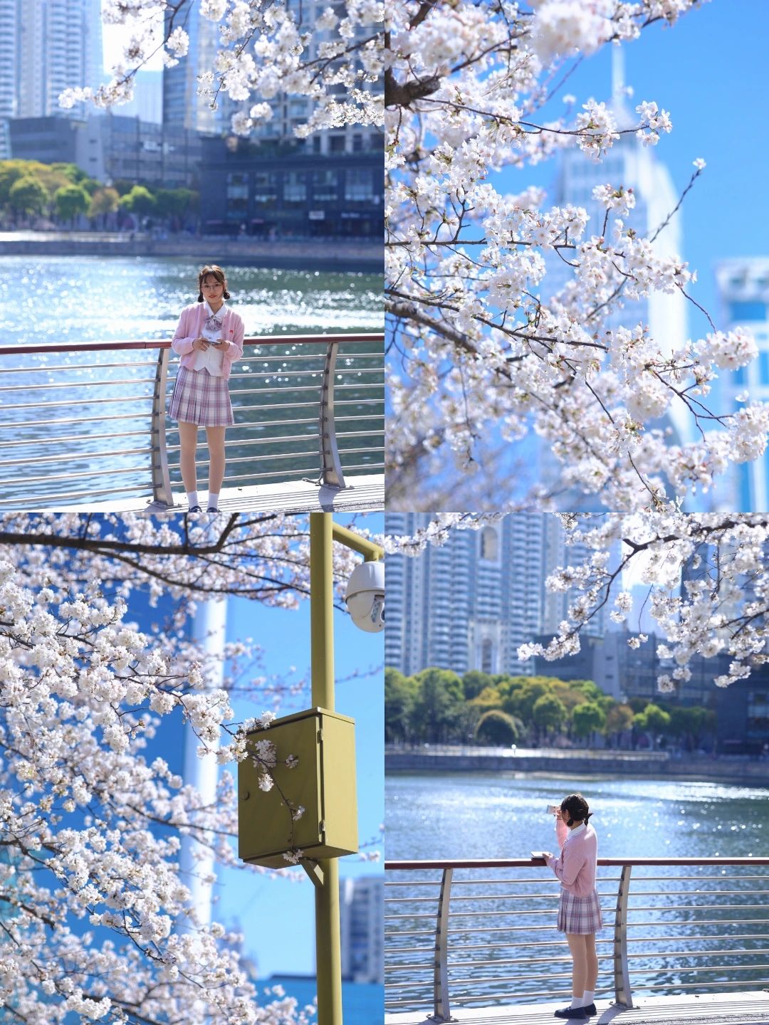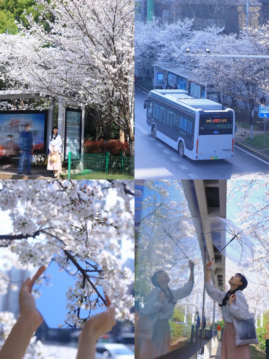 📝被樱花环绕的公交车站真的太浪漫啦,公交驶过车上还有樱花的倒影;对面的车站和相邻的一站也有樱花,傍晚蓝调时刻也很美