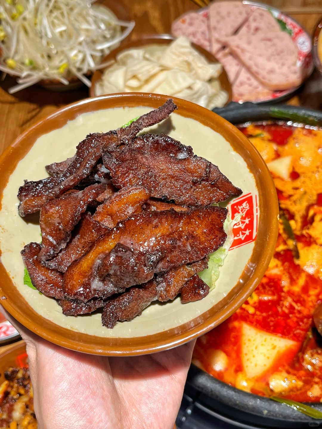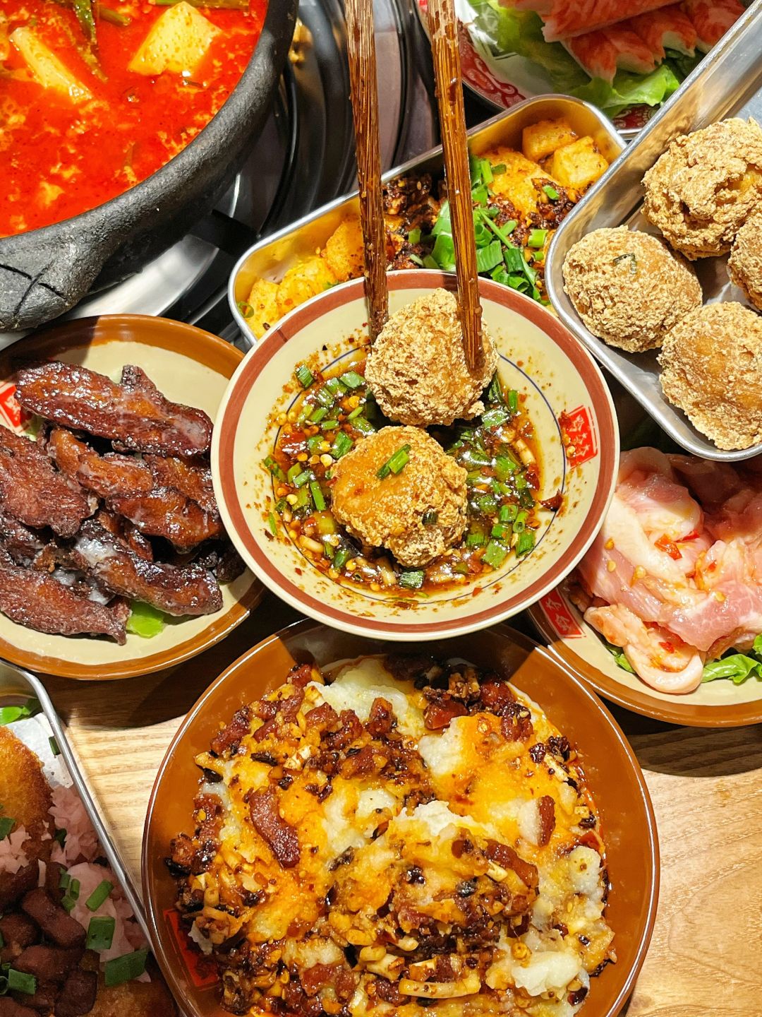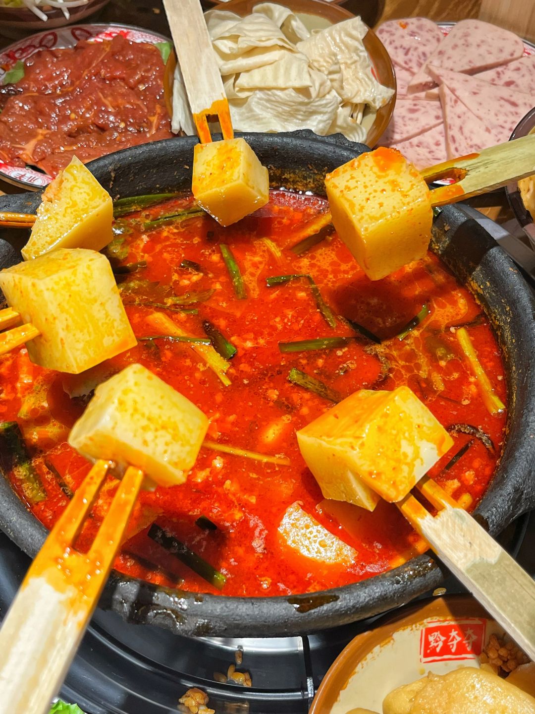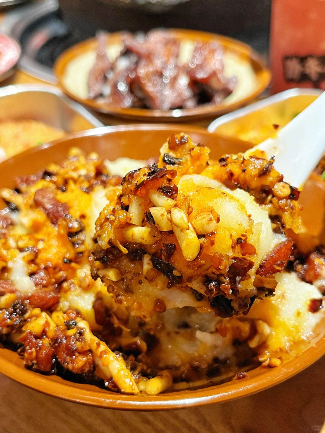 黔夺夺安顺夺夺粉火锅, 打卡密子君同款, 地道贵州酸汤的🔥火锅店。 . 🌈点单攻略: ✨贵阳脆哨丸子✨ 配上蘸料香辣可口, 咬一口就有浓郁的肉香四溢, 让人食欲大增。🥳 . ✨土豆泥拌饭✨ 可以在原有的基础上, 添加小料台内的酸萝卜、 折耳根和脆哨沫, 打造出属于自己的美味。😋 . ✨折耳根绿茶✨ 折耳根真是我的爱❤️, 清爽解辣,为火锅增添一份清新。 . ✨麻辣酸汤锅底✨ 麻辣中带着一点点酸味, 泰符合我们这种四川胃。 各种荤菜素菜搭配贵州米粉 味道简直jue了,姐妹👭们冲鸭~