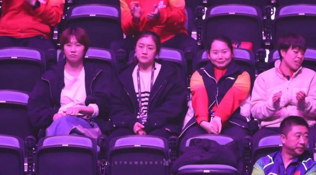 樊振东,马龙 陈梦 王艺迪,出现在决赛看台上,他们注视着队友,给她们加油 孙颖