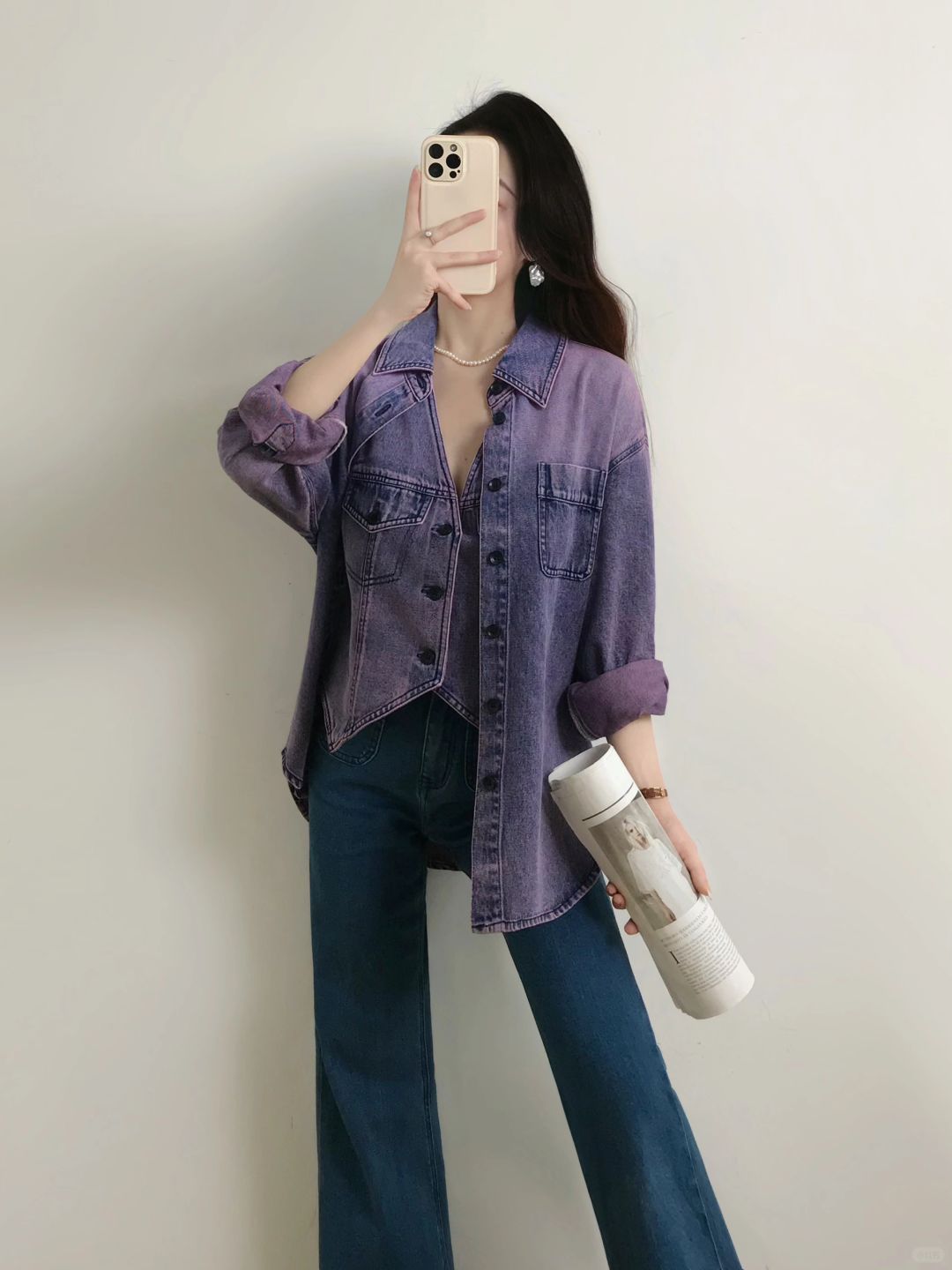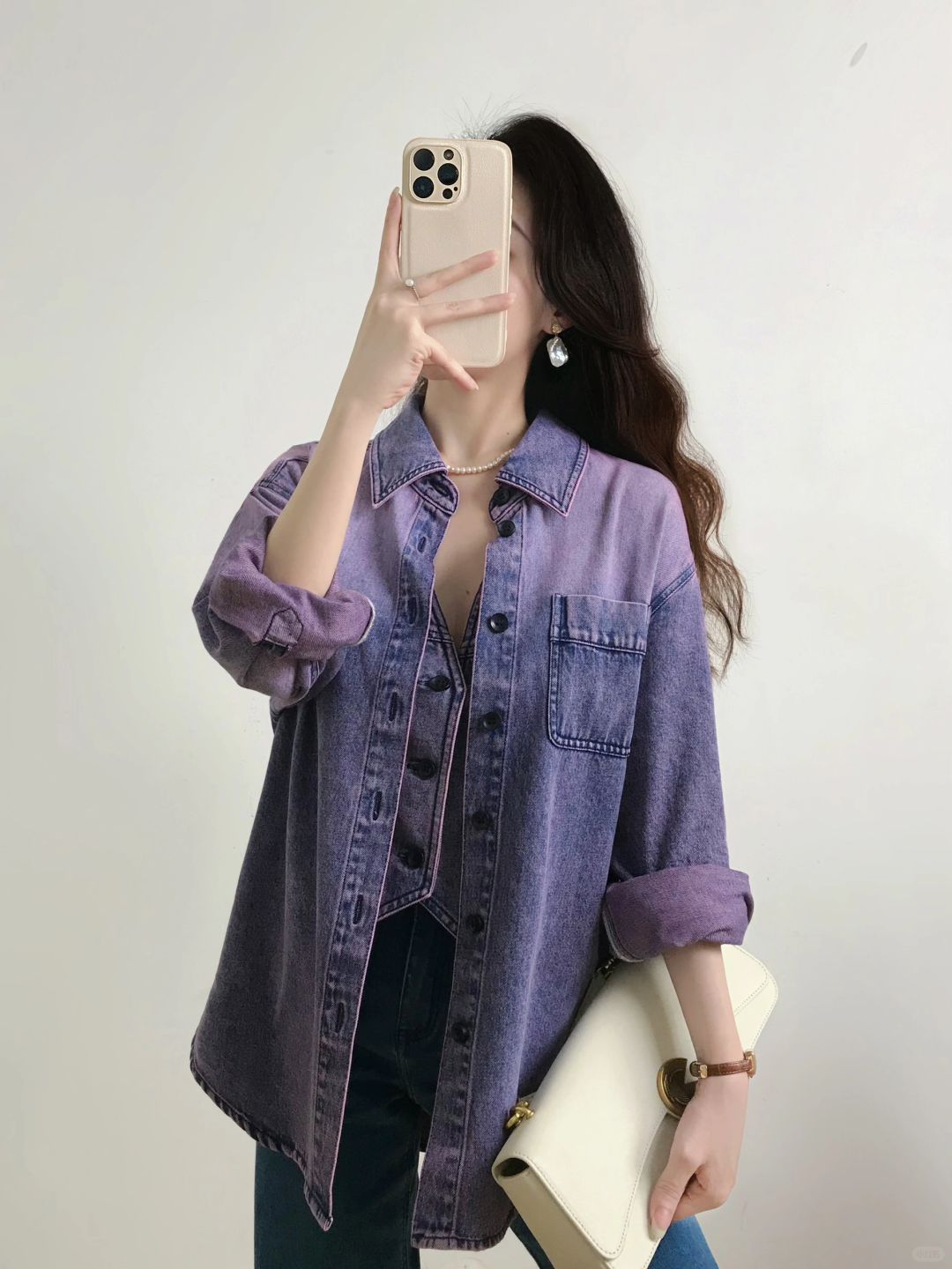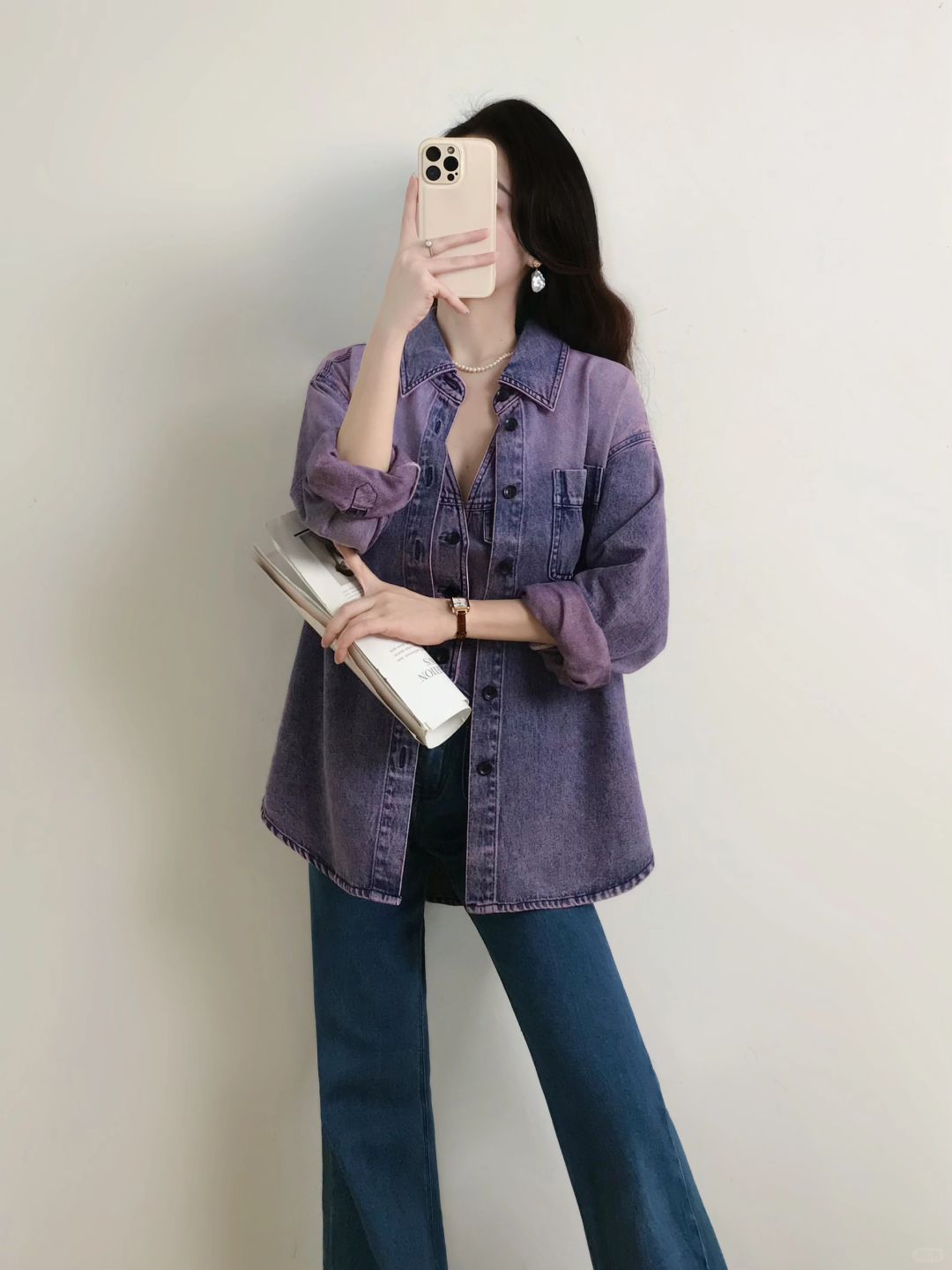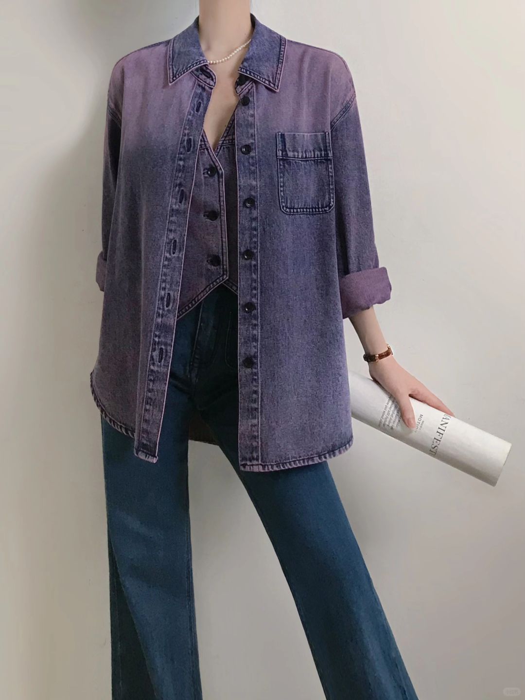 早春港风通勤|这件复古紫色牛仔衬衫太美啦