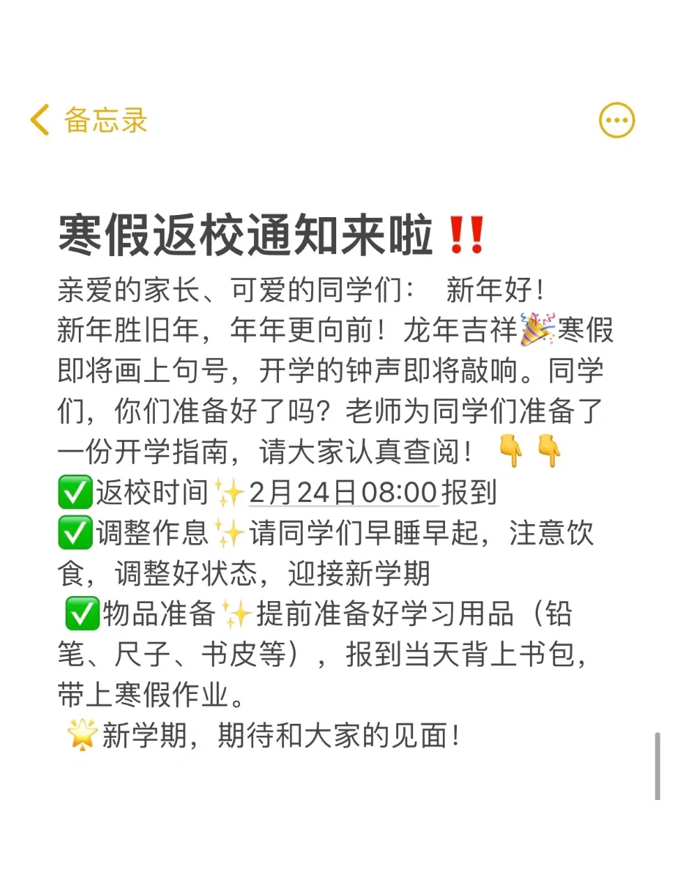 寒假超全收心以及返校通知来啦‼️老师们收好