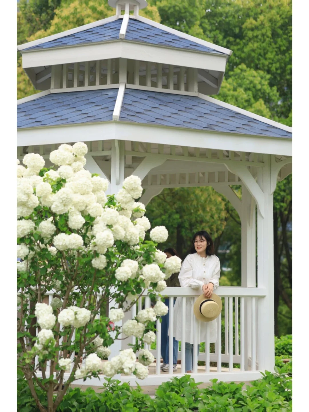 📝有四五颗,绣球旁边有白色亭子适合拍人