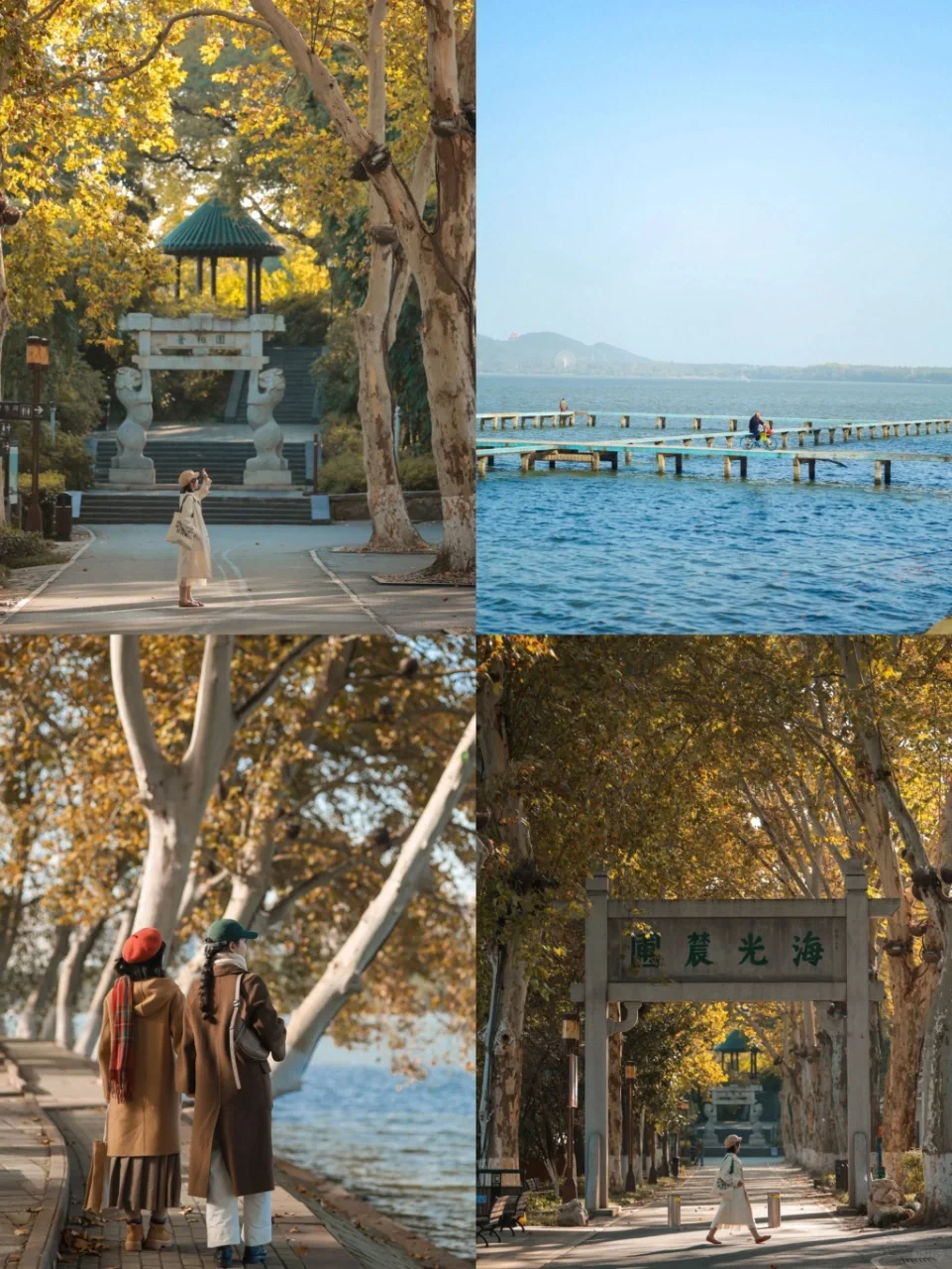 武汉大学和凌波门的秋色很美,听涛景区的梧桐大道也很适合散步