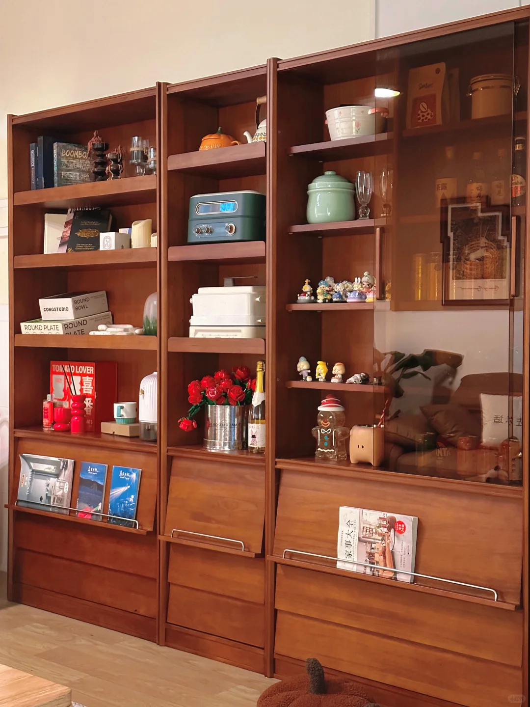原先的幕布换成了我一整套书柜