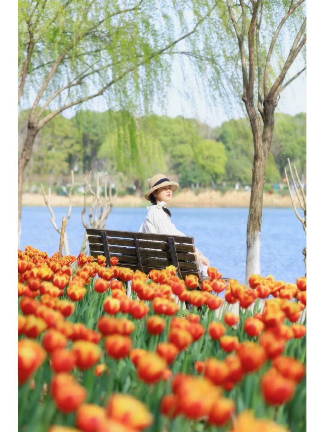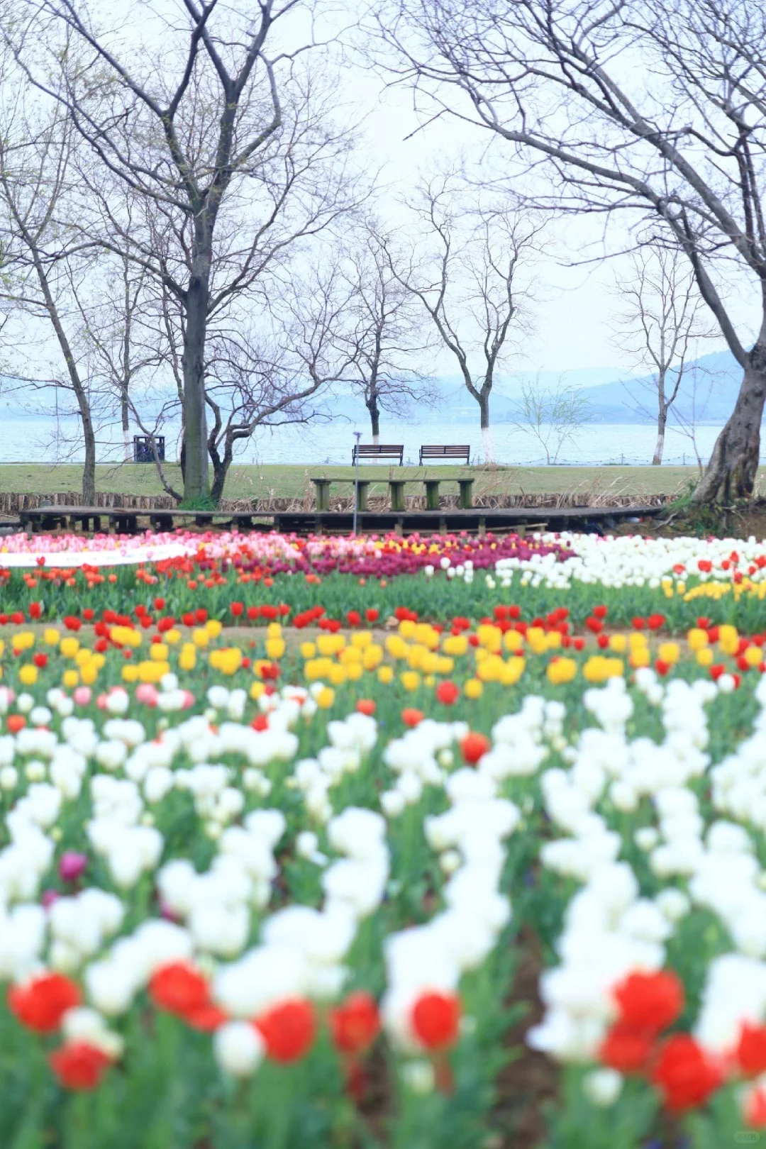 0元郁金香🌷天花板,开在湖边的大片郁金香太浪漫,适合拍人像