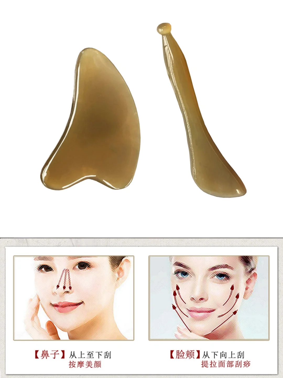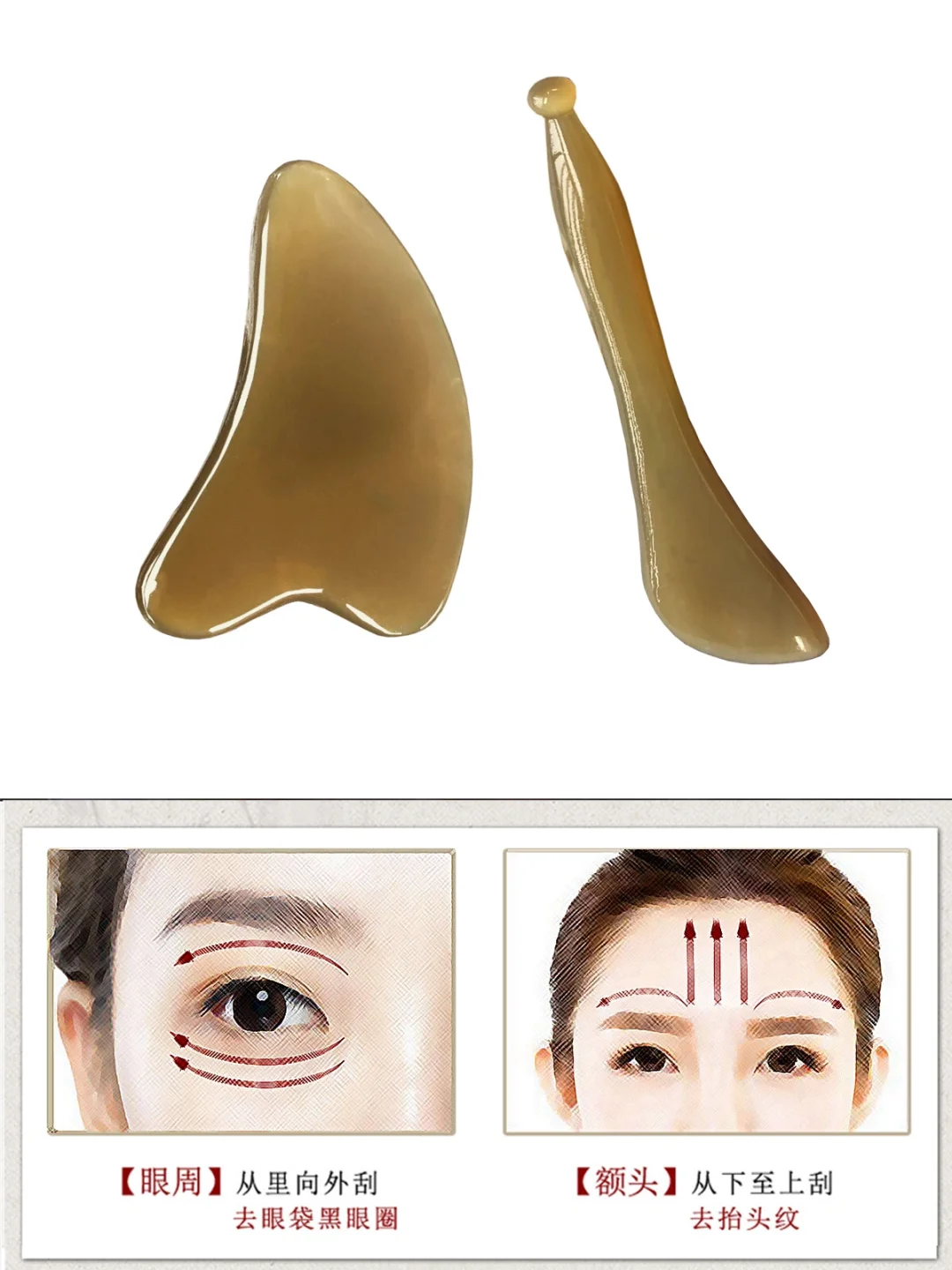⭐⭐⭐工具选择⭐⭐⭐ 💡1、加厚1.0CM:敏感肌可用,法令纹部位,细纹部位,皱纹部位,痘印部位,黑眼圈部位,抗初老,肌肤弹力,提亮不暗沉; 💡2、厚款0.7-0.9CM:紧致肌肤,抗初老,细纹,熊猫眼,暗黄提亮; 💡3、薄款0.4-0.5CM:舒筋,活经通络,缓解疲劳; 💡4、拨筋棒长12-13cm:黑眼圈,眼纹部位; 牛角刮痧板和拨筋棒,配合护肤品营养精华,营养霜等,效果+,有助于吸收; - ⭐⭐⭐简易4步骤⭐⭐⭐ ✔️1、卸除彩妆、爽肤,清洁面部 ✔️2、展油,穴位点按 ✔️3、根据图示方向操作,方向单向,不来回; ✔️4、刮痧板安抚脸部,放松面部 - ⭐⭐⭐基础方向⭐⭐⭐ ❤️里➡️外 🧡下➡️上 💛左➡️右 - 牛角刮痧板,中福康刮痧板 牛角刮痧板,任何两个都不会一样