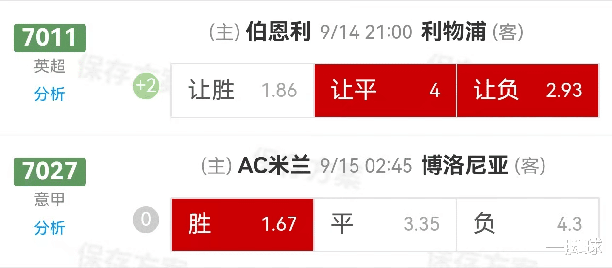 竞彩推荐:让平 让负 比分参考:0-2 0-3周日 027 意甲 AC米兰 VS 博洛尼亚