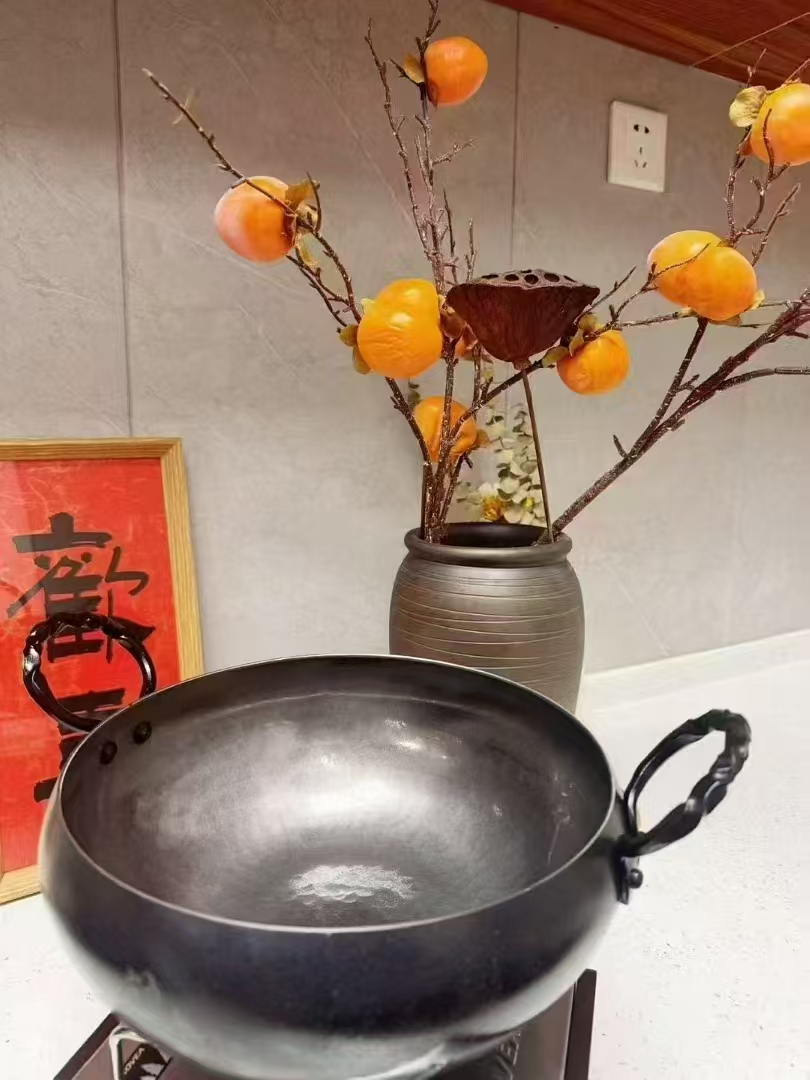不同于流水线生产的“快餐式”厨具,它带着手作的温度:老师傅们凭手感把控火候,靠经验调整弧度,让锅沿的角度刚好适合颠勺,让锅底的厚度足以均匀受热。这样的铁锅,刚到手时或许带着生铁的“愣气”,但用得越久,越会被岁月“养”出温润的光泽,就像一位默契的老友,懂你的烹饪习惯,更懂你对美味的执着。