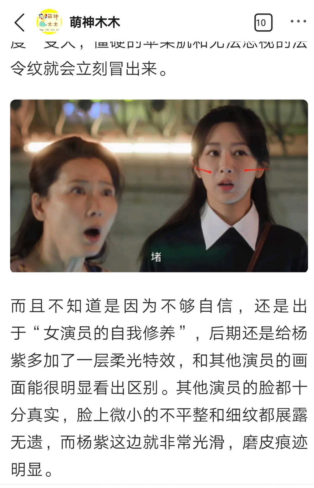 杨紫的待遇堪比一些中年女演员,在剧里单独磨皮,剧里别的演员是正常脸,她自带一层滤镜。