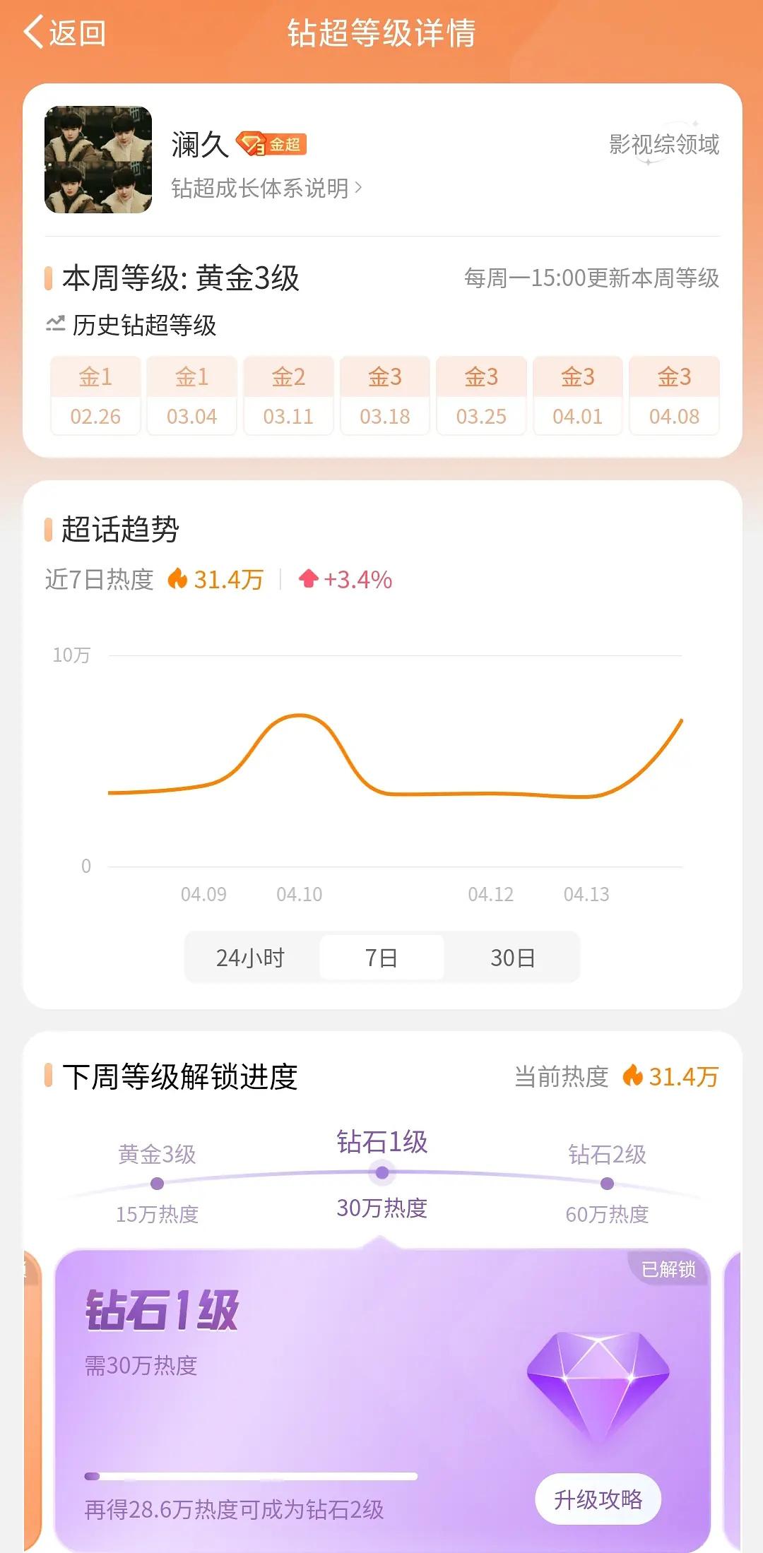 致命游戏 CP 超话“澜久”超钻了,这个超like有点惊到我了,比一些流量小花还要好。