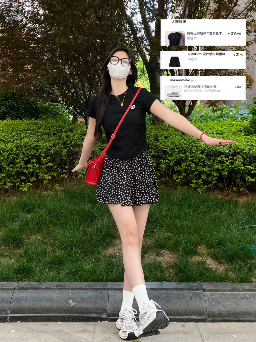 50r搞定一套!收腰正肩T➕碎花短裙!好好看!