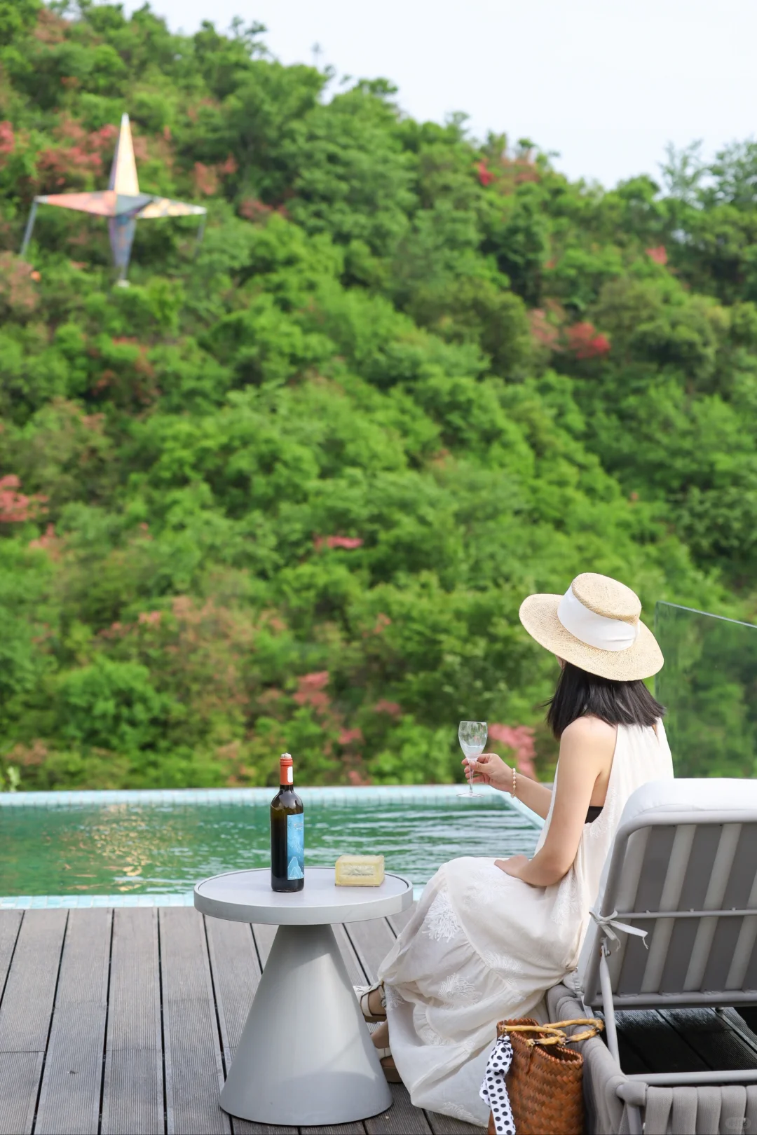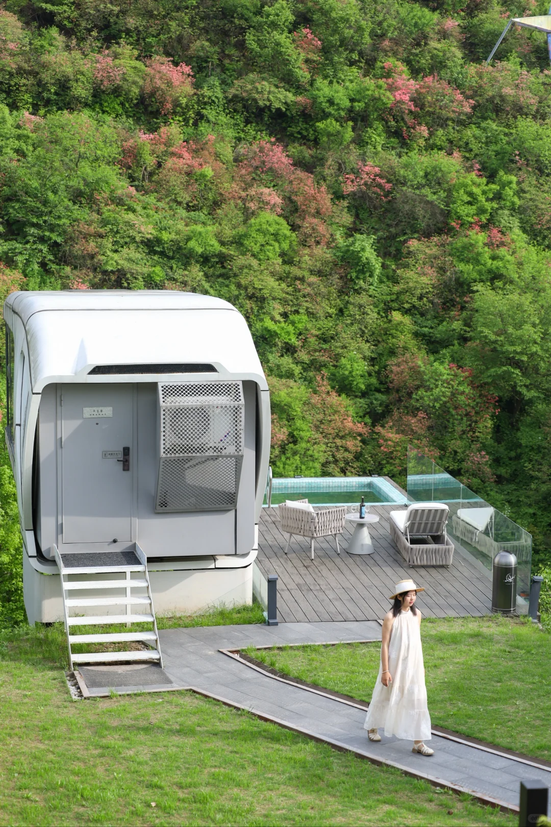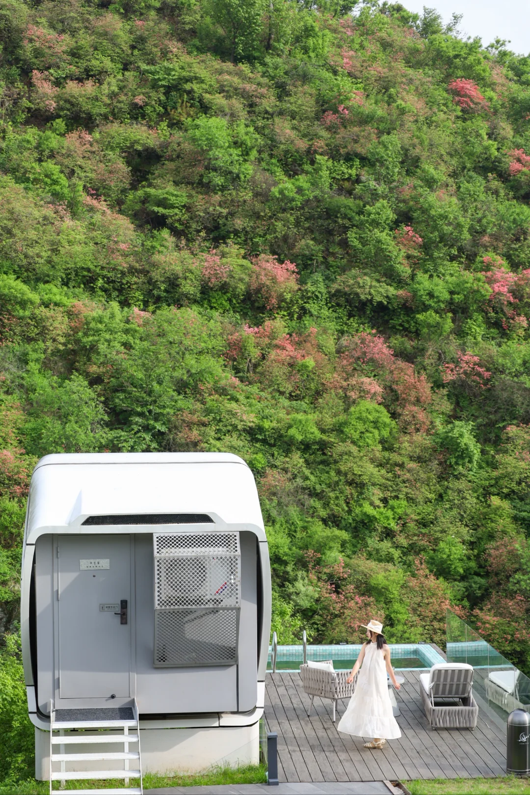 武汉周边居然藏着这样的宝藏度假地 被朋友⭕️问爆都以为我去旅行了 在青山绿水的半山悬崖太空舱远离喧嚣 日观日出🌄云海夜赏星河 270度全景落地窗零距离接近大自然🌿 躺在床上就能看星星🌌 有种睡在山水之间的感觉~ 可以沿着木栈道散步 满山遍野的映山红很治愈 或是自驾10分钟到西峰古寨 感受“武汉之巅”的壮观